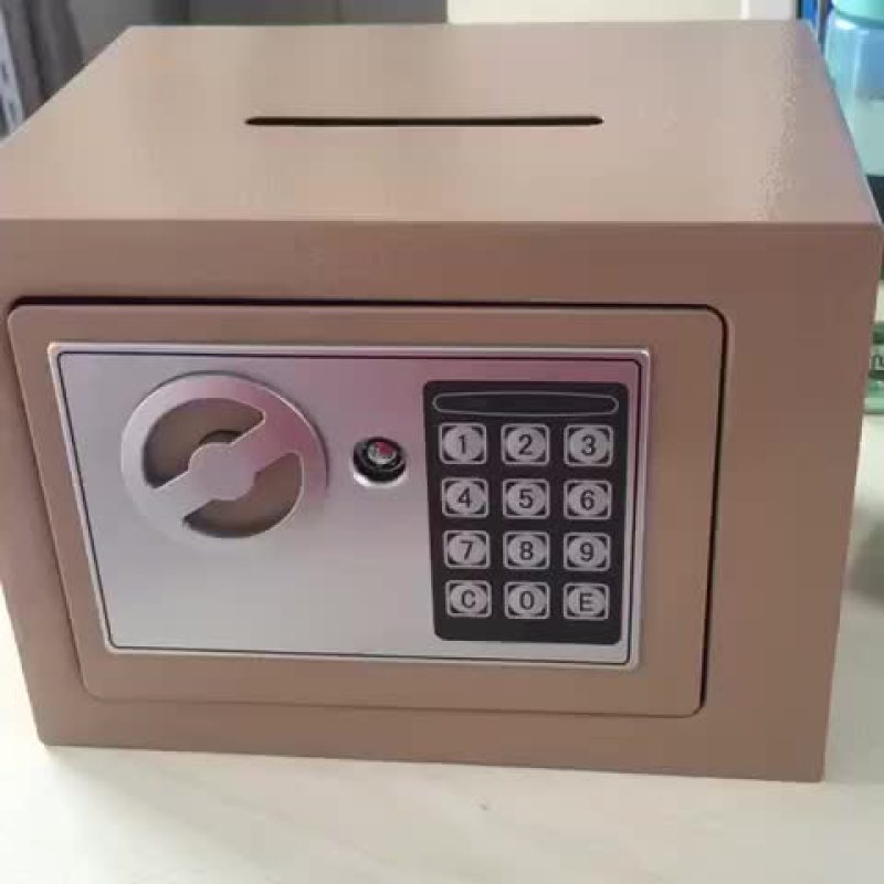 About Product:Brand: xinsheng (office supplies) model: 17\nColor classification: light yellow tuhao gold light pink elegant black deep pink white bronze tuhao gold coin slot black coin slot pink coin slot red coin slot white coin slot bronze coin slot blue coin slot emerald green\nTall 20 wide 31 deep 20cm large gold\n20 by 31 by 20cm large black 20 by 31 by 20cm large white blue\nSafe type: electronic safe\nOpening style: single door\nApplicable scenario: home use