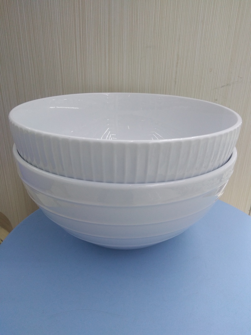 8-Inch White Embossed Ceramic Bowl 中文版