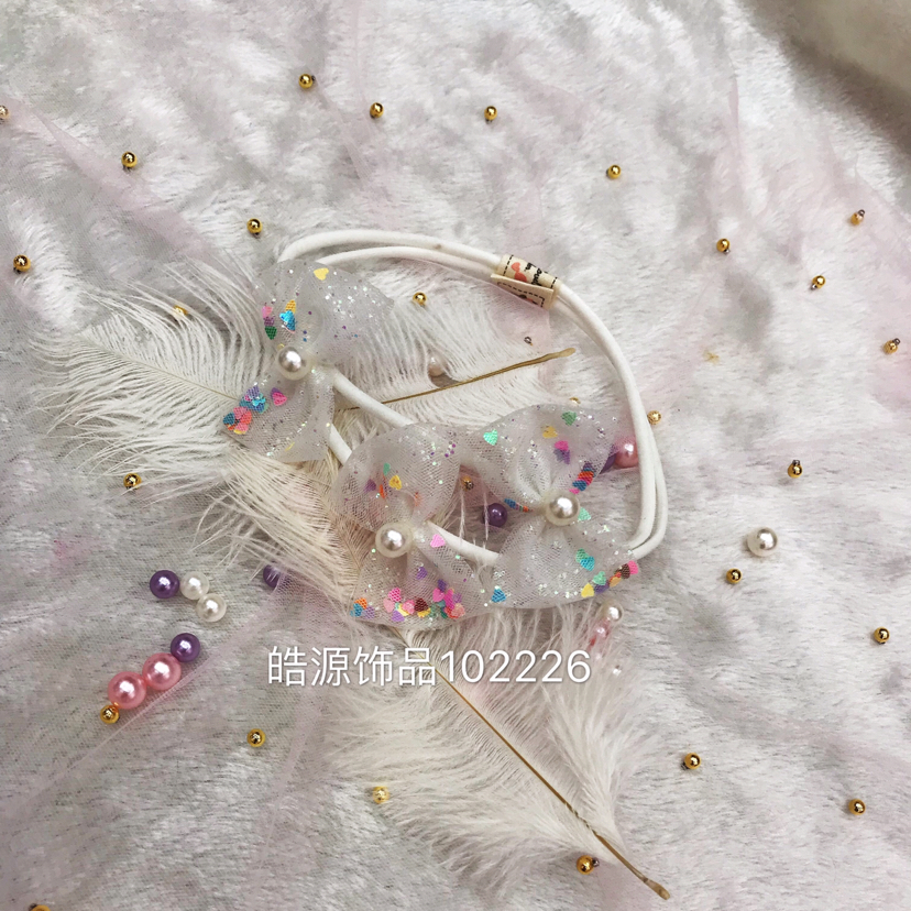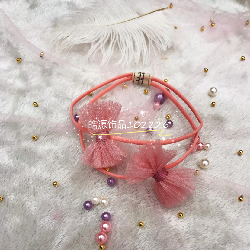 baby girl cute bow tie fur ball lace hair band rubber band 中文版
