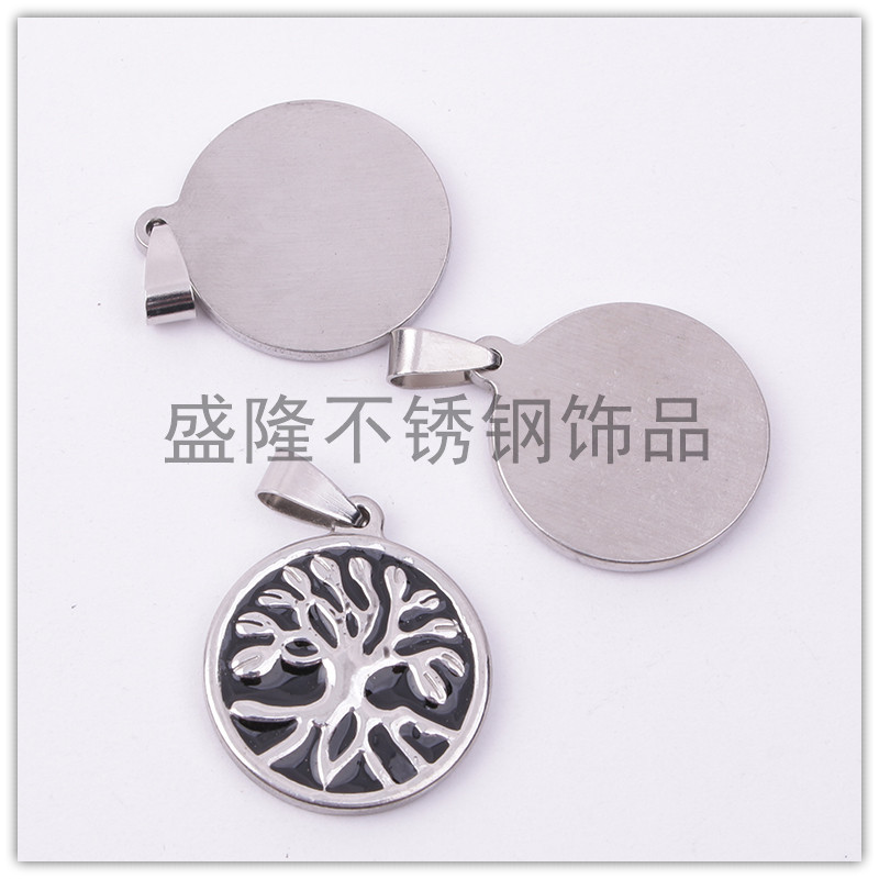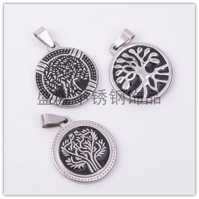 factory direct european and american new titanium steel stainless steel round hollow fashion lucky tree pendant wish