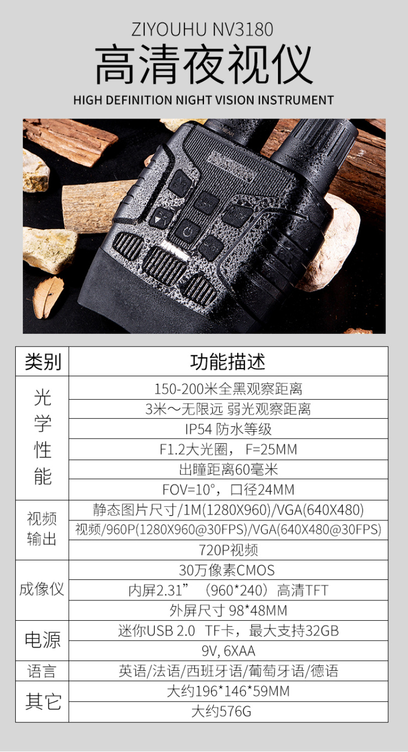 About Product:The new ZIYOUHU freedom tiger cd-6 and cd-8 single-cylinder infrared digital night vision device hd photo and video WIFI transmission