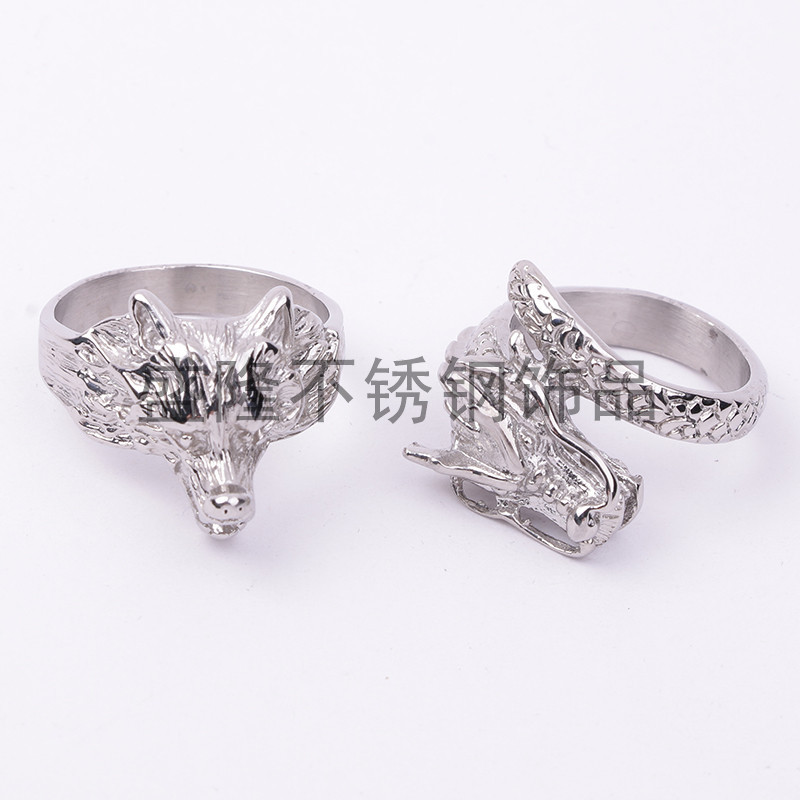 manufacturers sell vintage wolf head ring domineering titanium steel ring men's wolf head ring animal ring 中文版