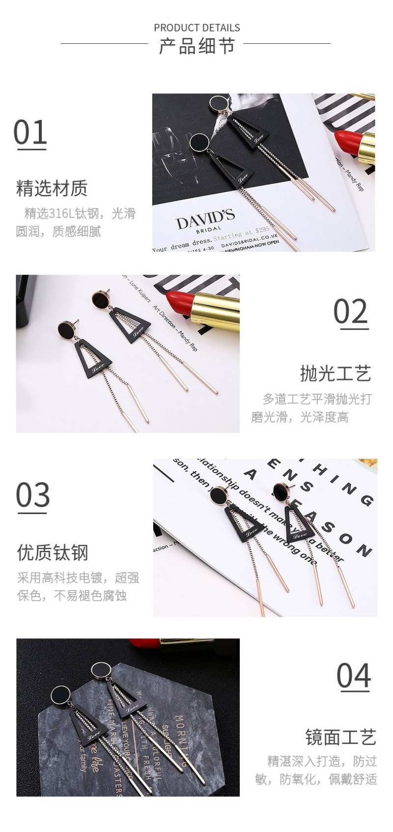 Ayunan Ornament Fashion Stainless Steel Eardrop Titanium Steel Earrings Japanese and Korean Fashion Factory Direct Sales