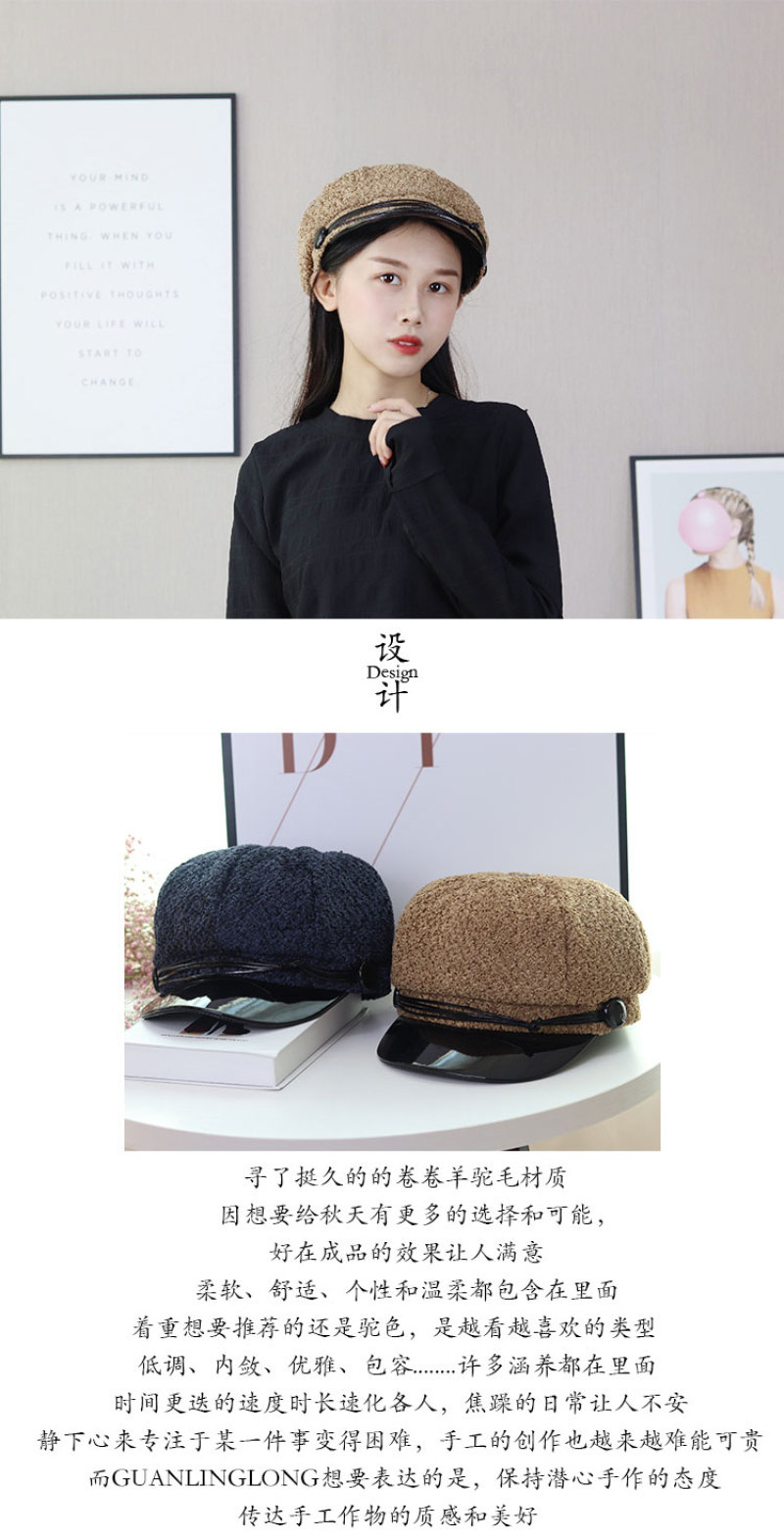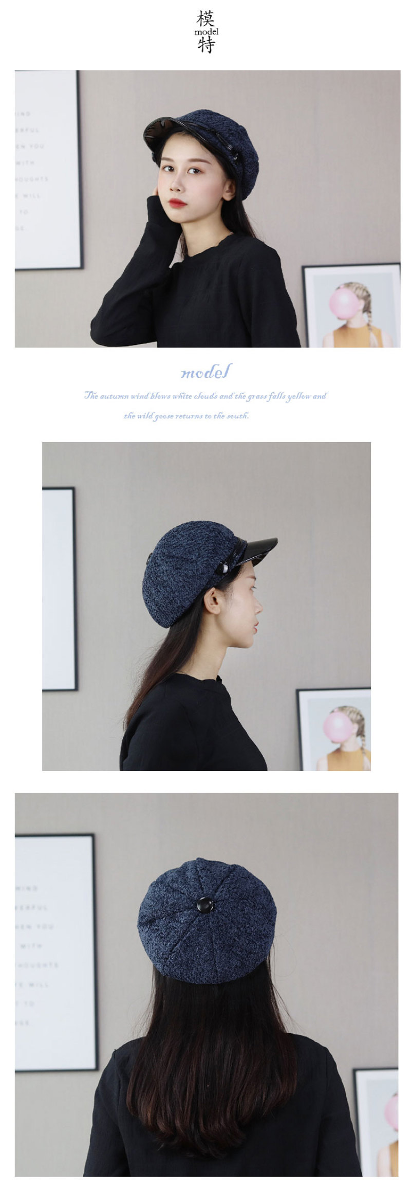 Guan Linglong 2019 autumn/winter New Alpaca wool Navy Cap student Cap octagonal hat Versatile Japanese and ins style 中文版