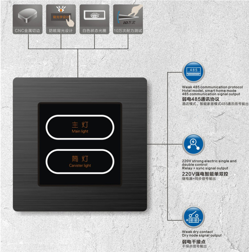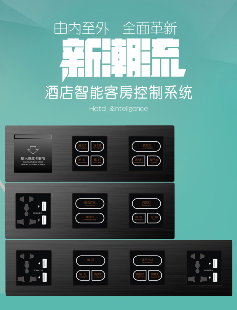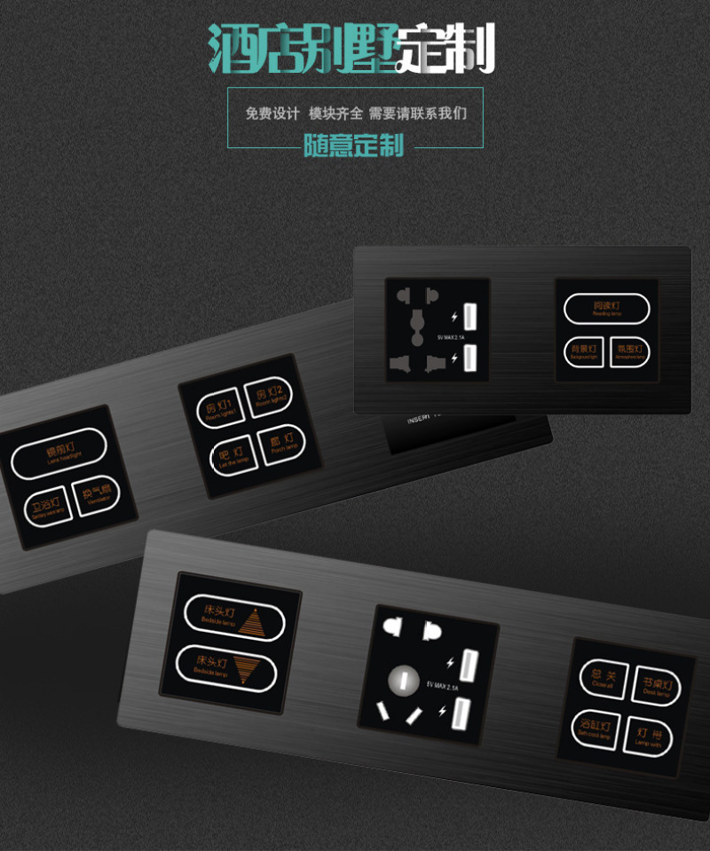 Hotel nightstand control switch panel KTV Hotel weak 12V strong 220V custom combination switch 中文版
