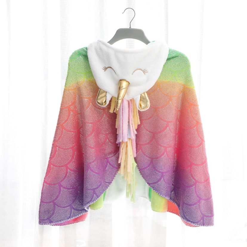 bronzing rainbow unicorn cloak tv blanket coral fleece shawl blanket cosplay