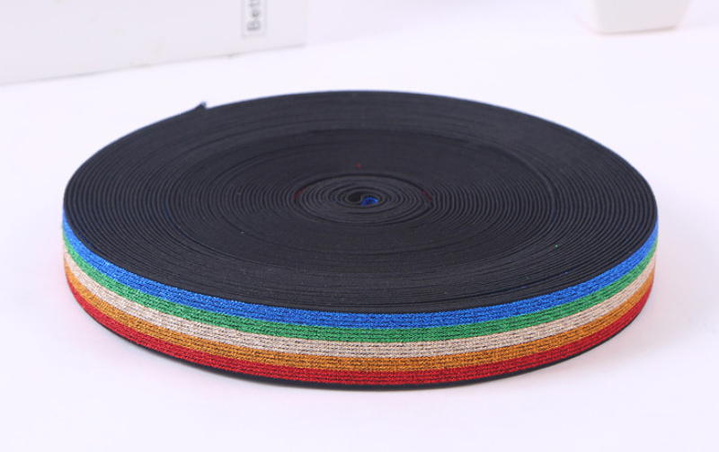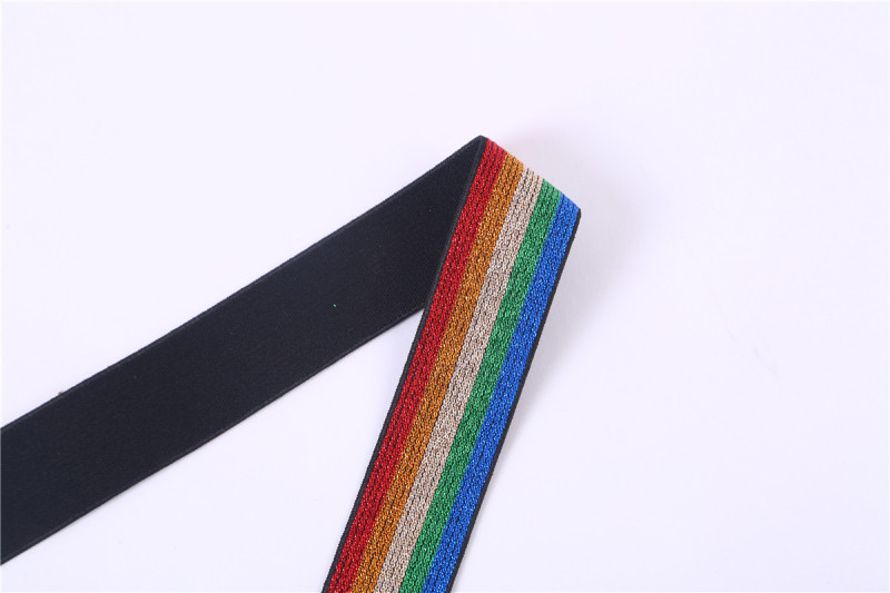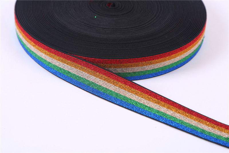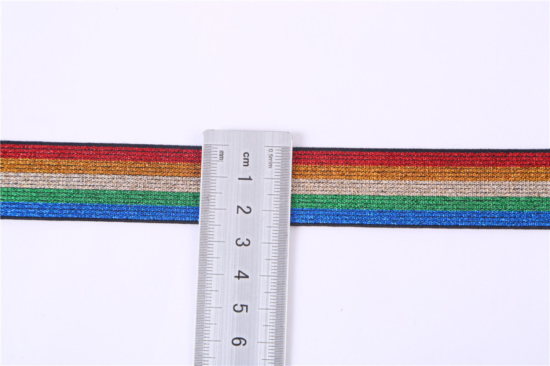 2.5cm colorful gold and silver wire elastic band rainbow leggings woven elastic tape elastic accessories 中文版