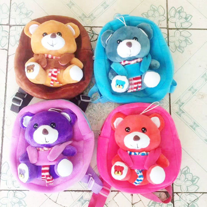 Bear 3 kindergarten children plush bag boys and girls snacks backpack cartoon cute backpack 中文版