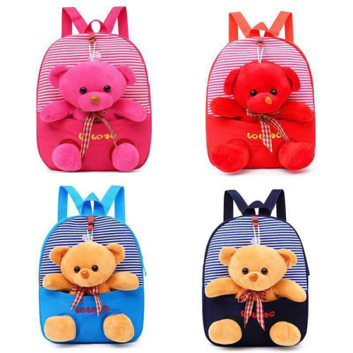 Striped bear kindergarten children plush bag boy girl snack backpack cartoon cute backpack 中文版