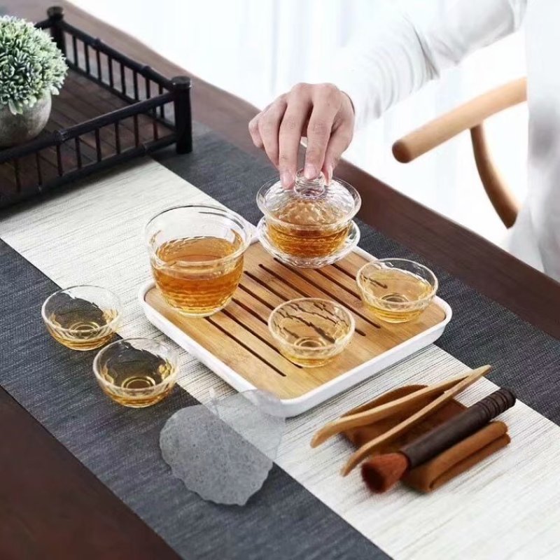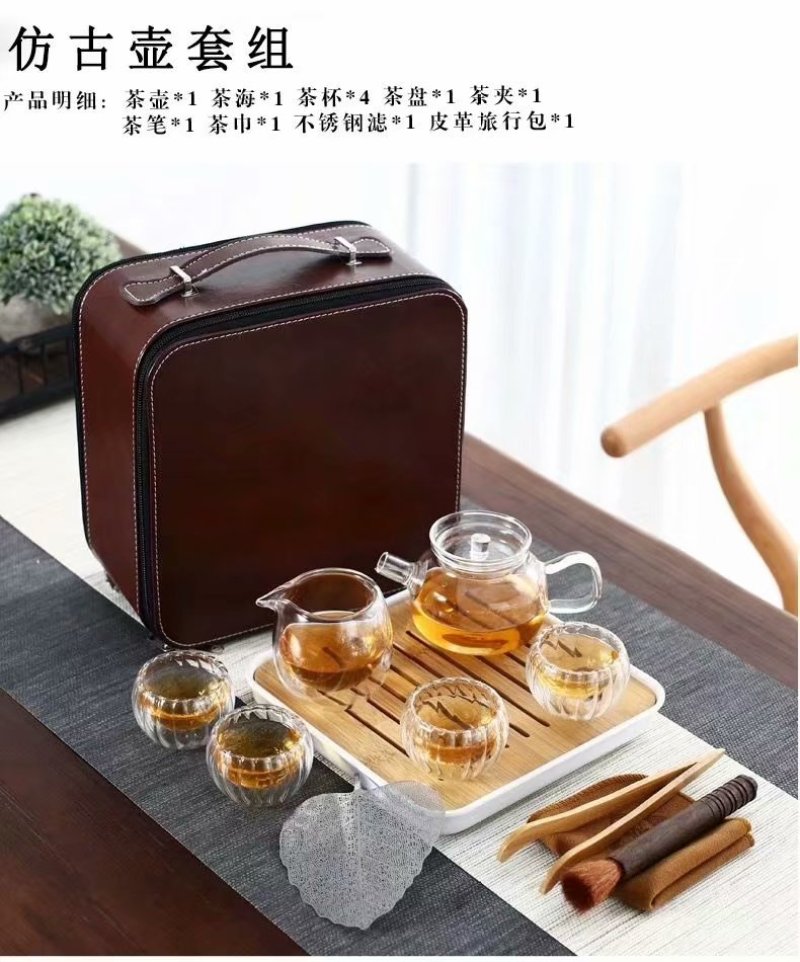 glass high temperature resistant portable travel tea set tea cup teapot tea tray kung fu tea set 中文版