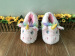The new unicorn slippers are made of high-quality plush material, with a good feel. They are available in white and pink colors. The sole is black.Waterproof Rubber Sole,Shoe sole length: 26cm, shoe weight: 0.28kg, packaged in an OPP bag/pair