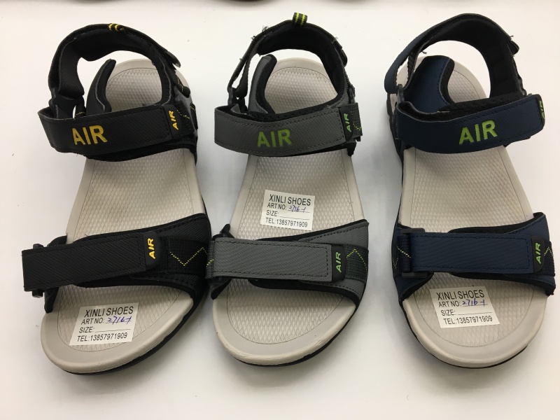 Xinli Shoes' own brand, currently available in several colors as shown in the images. The TPR sole and secondary MD midsole, with a jacquard weave belt lining, is available in sizes 39-44. Each inner box contains 123321 pairs in a single color and is packaged in a clear-labeled manner. The shoes can be repackaged according to the customer's specified quantity. They feature breathability, traction, and massage functions.Please call to confirm your order, as we do not provide shipping without confirmation. (Currently, many styles are in stock.)
