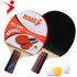 Two rackets and three plastic table tennis balls