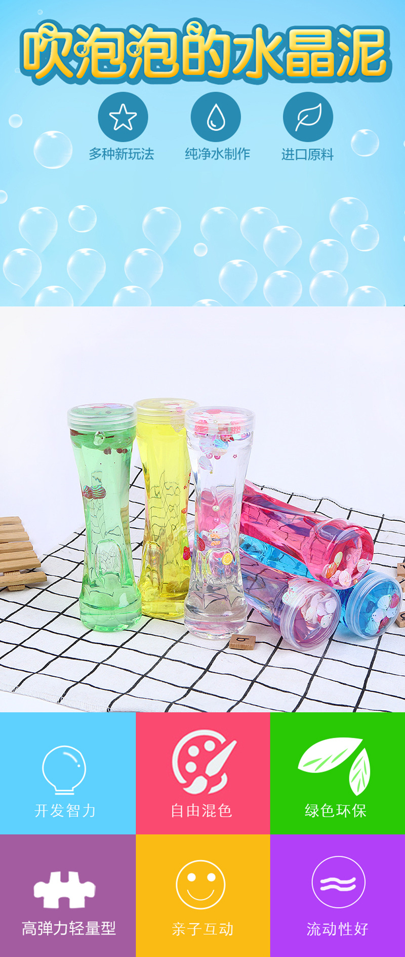 crystal mud transparent safe non-toxic rubber colored clay baby girls' toy plasticine foaming glue