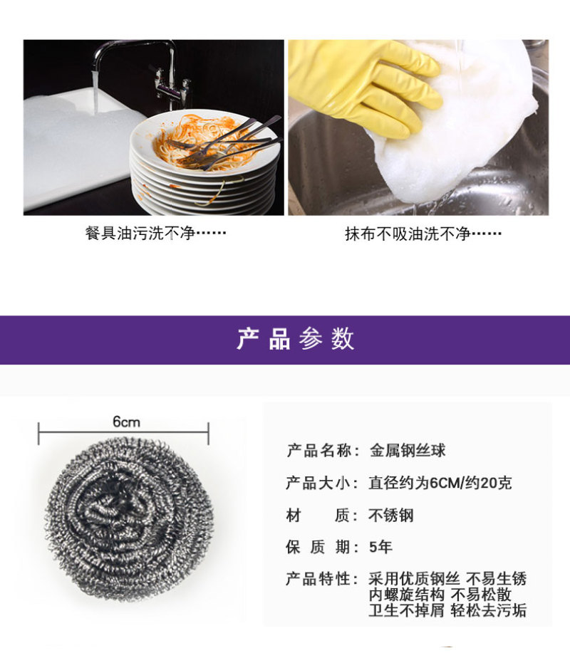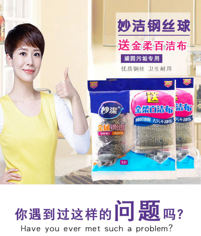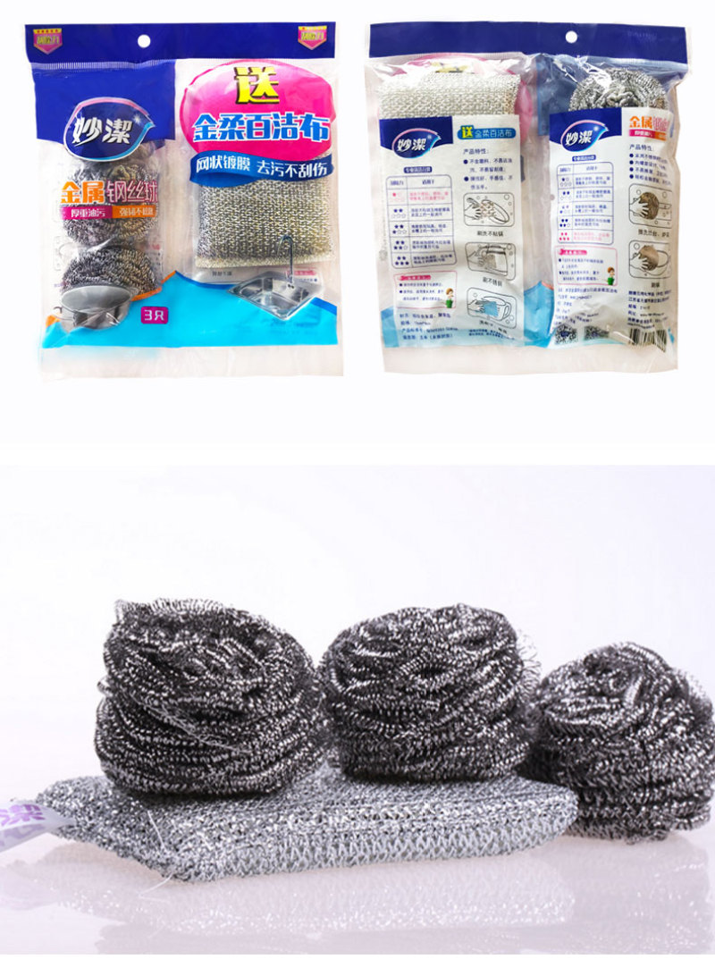 Miaojie C- Type Metal Steel Wire Ball 3 Pieces Free Jinrou Scouring Pad Double Effect Easier for Kitchen Cleaning 中文版