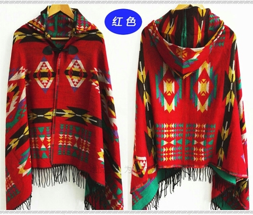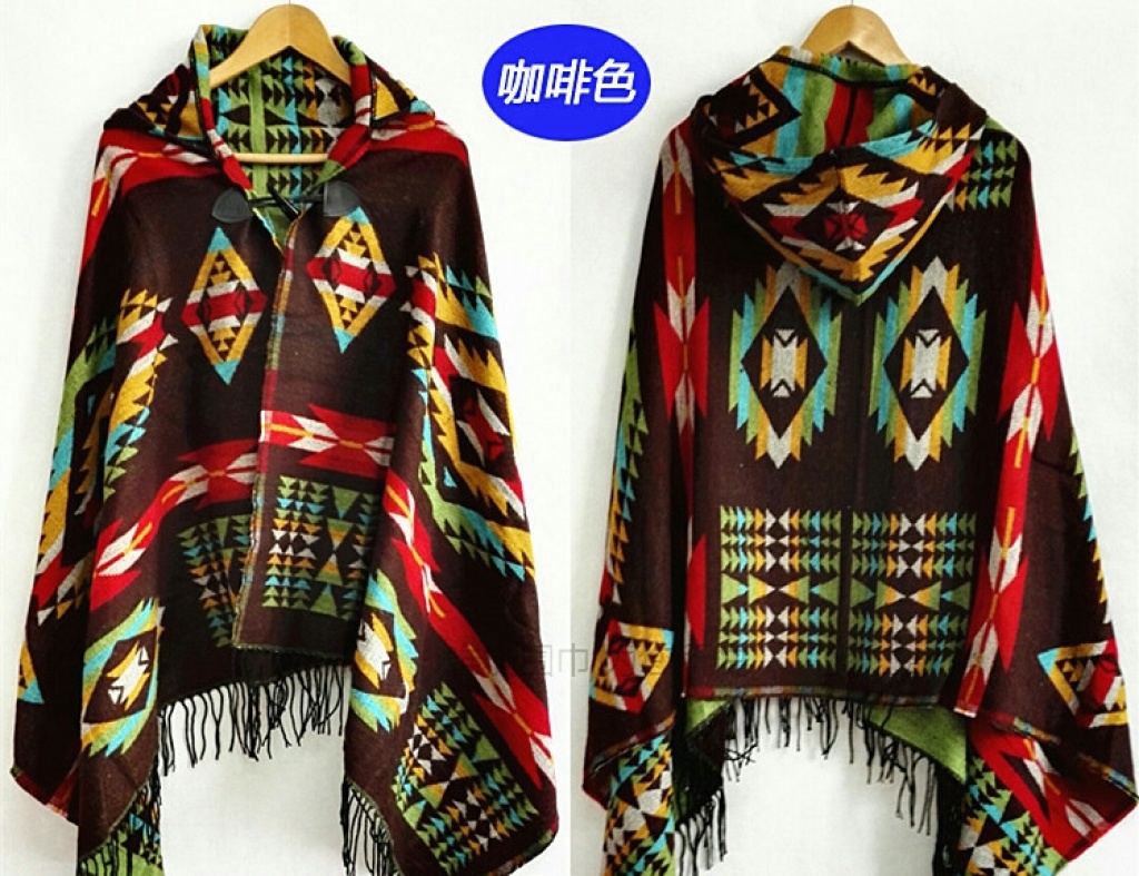 ethnic style hooded shawl