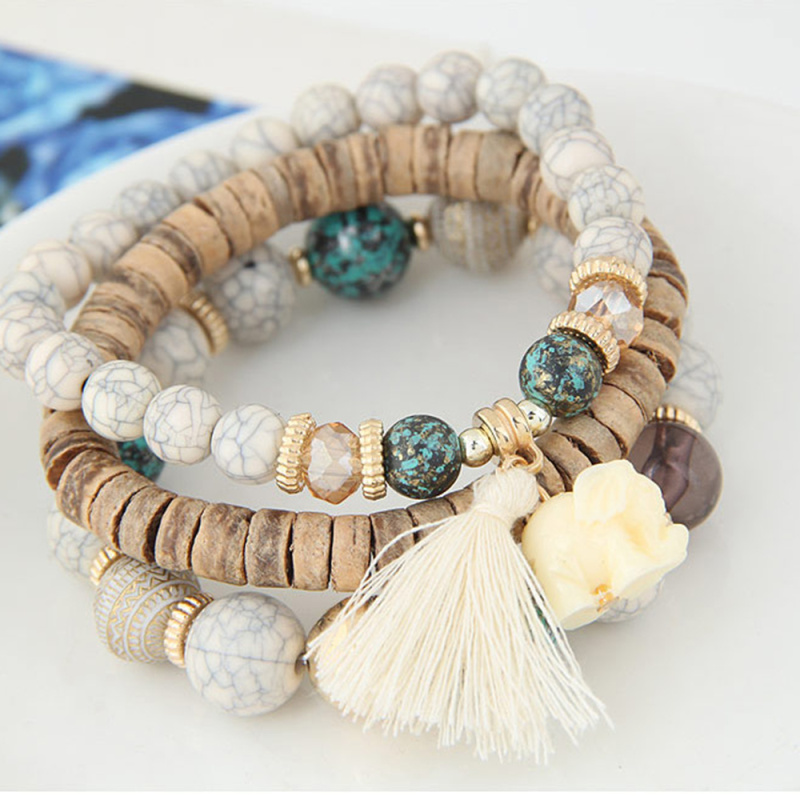 European and American fashion, wood beads, natural turquoise, elephant, crystal thread, beaded tassel bracelet, custom wholesale by manufacturers