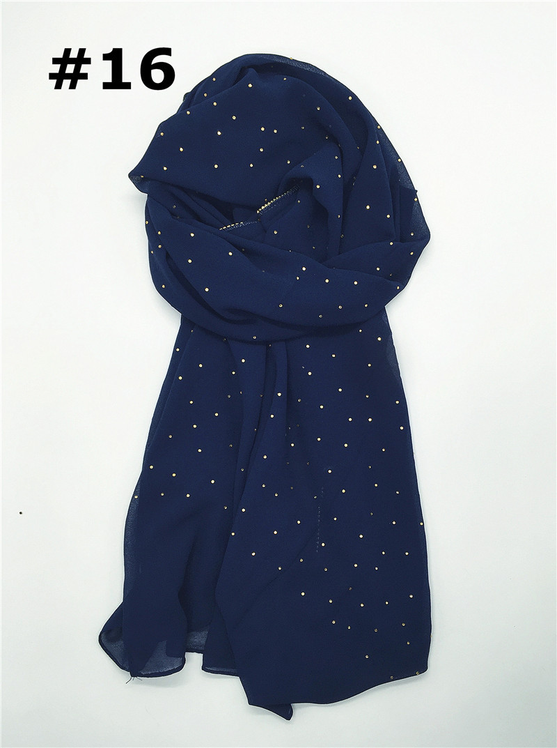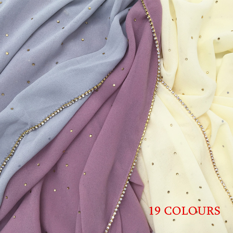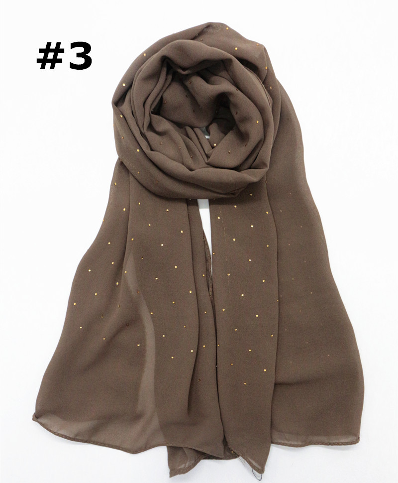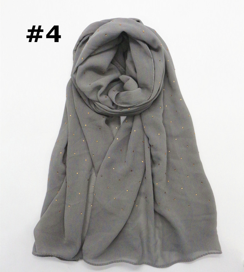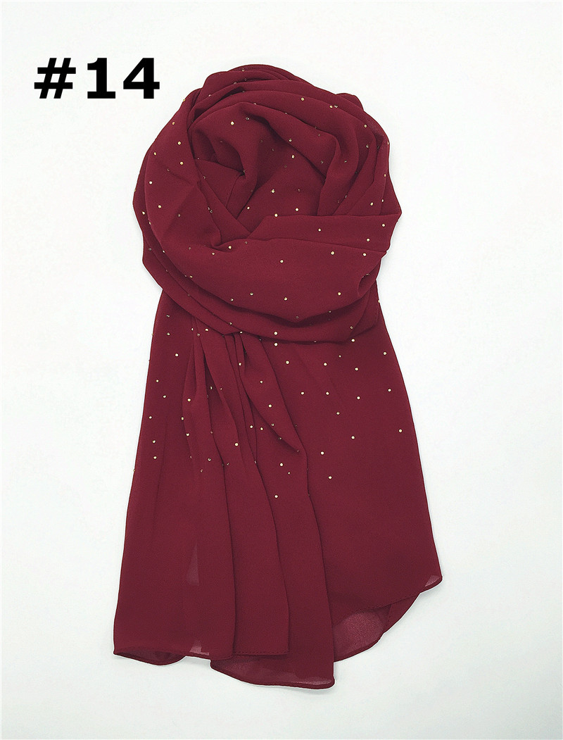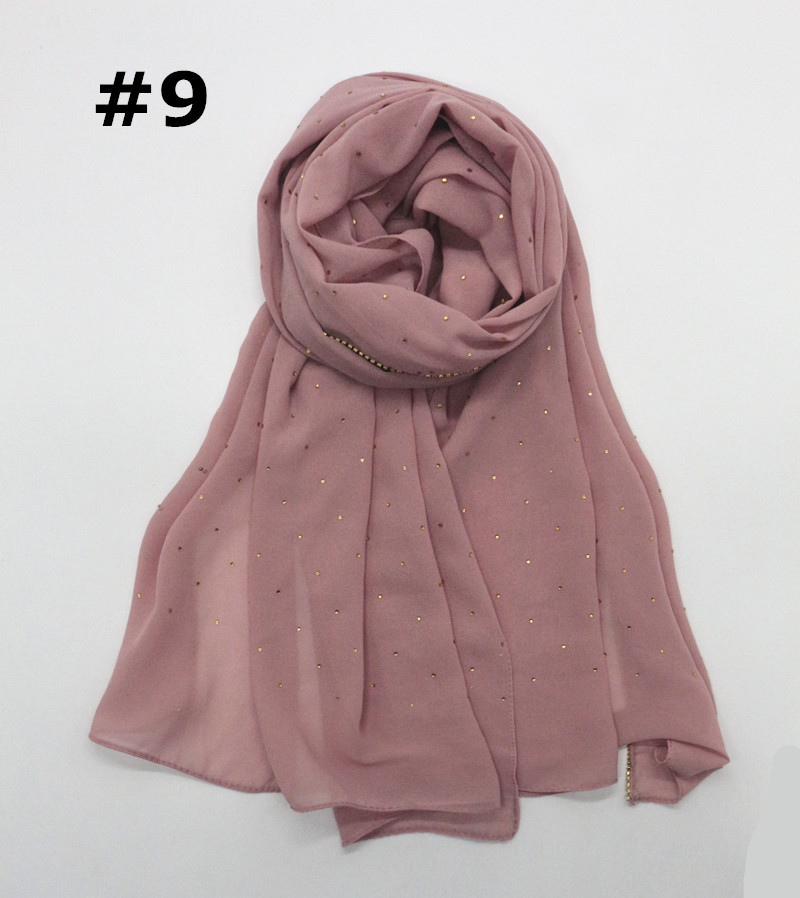 Pure color pearl chiffon hot diamond chain edge scarf silk scarf