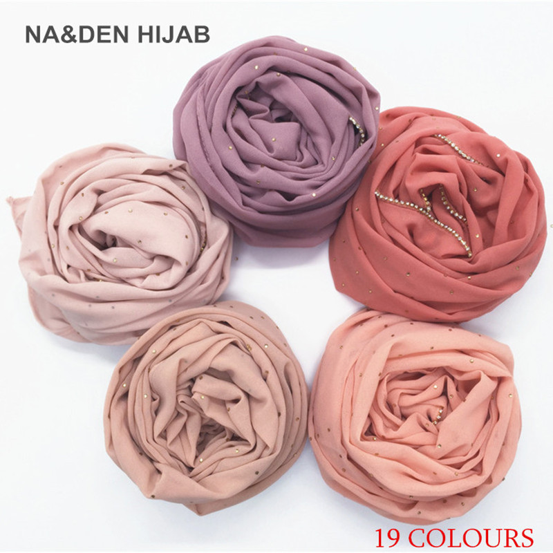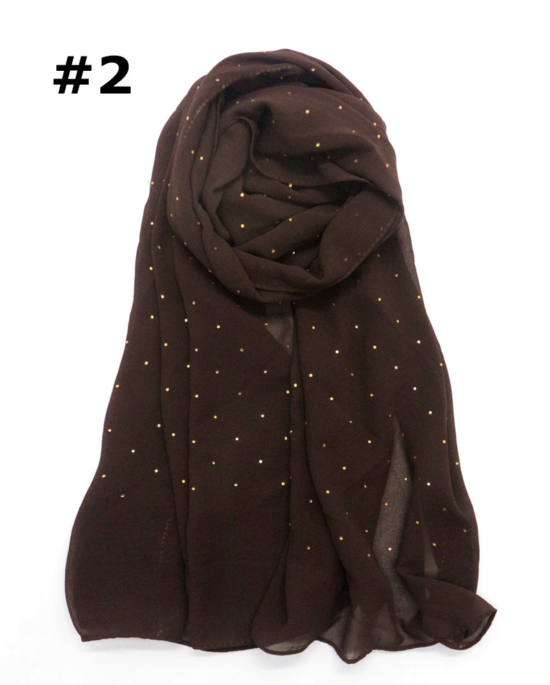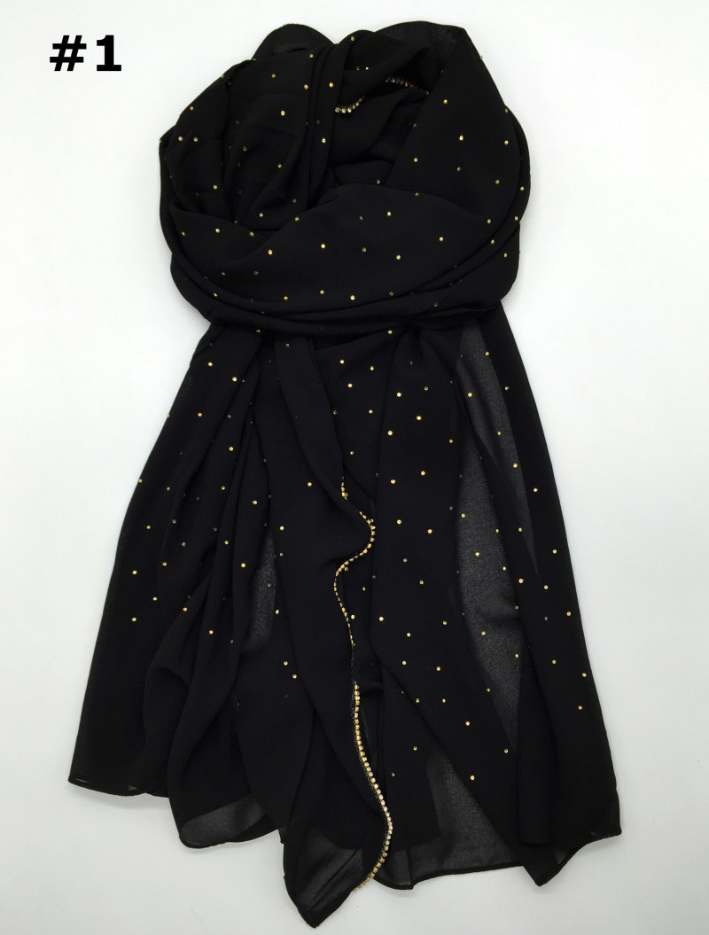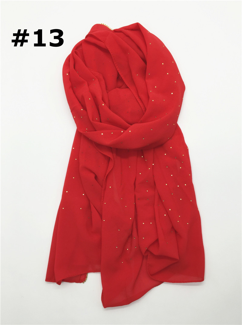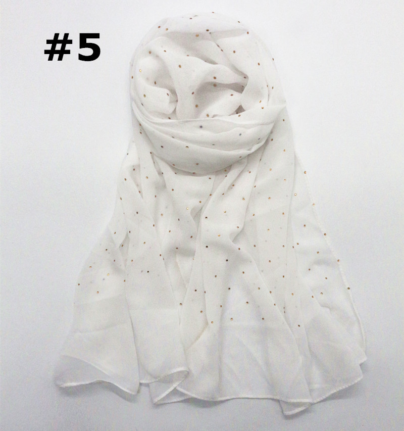 Pure color pearl chiffon hot diamond chain edge scarf silk scarf