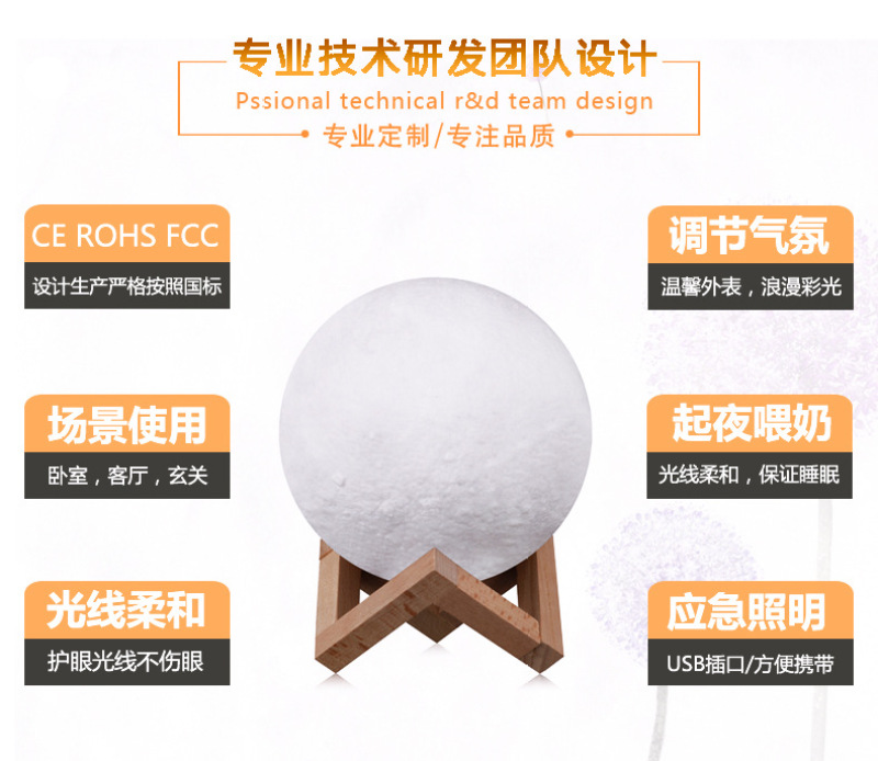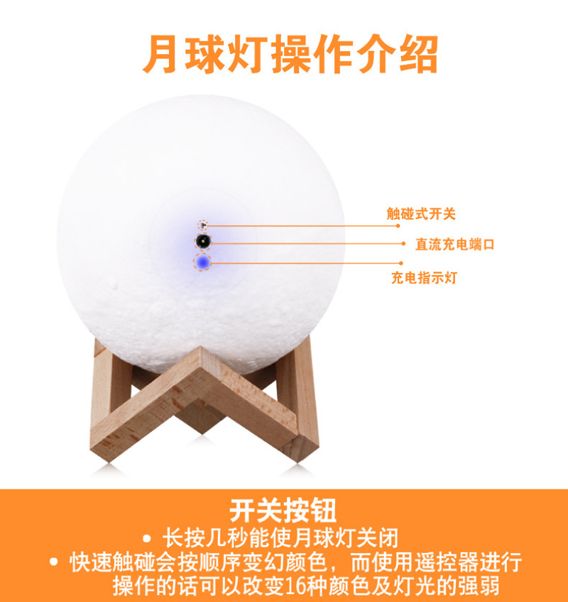 Touch Touch 3D Moon Ball Lamp USB Colorful Bedside Lamp Led Moon Light 16 Color Remote Control Night Light