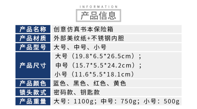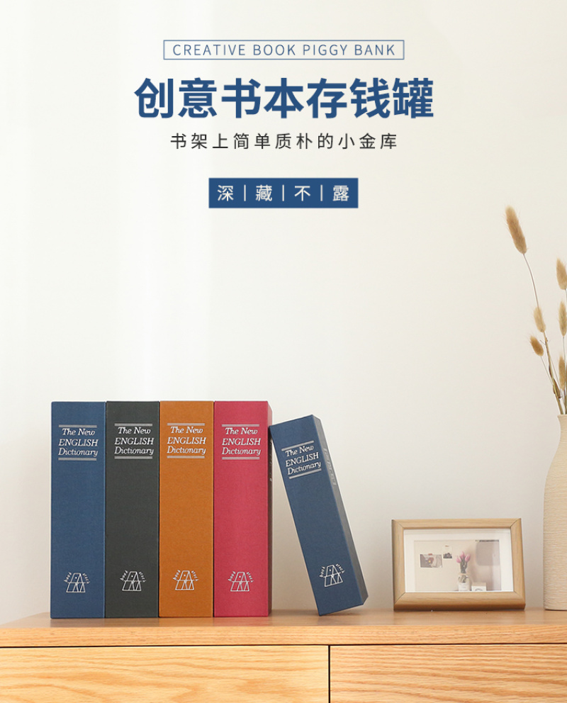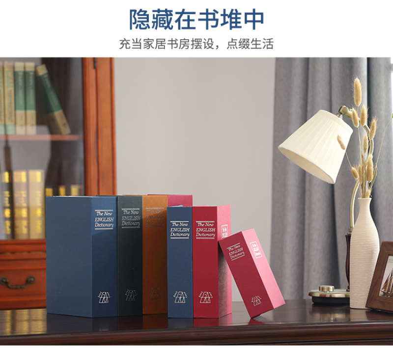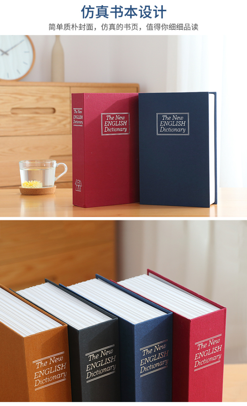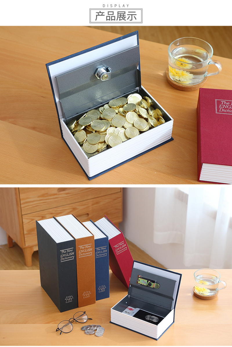 About Product:13407 large creative imitation book safe password key lock iron box small mini student storage box\nBook safe password box with lock web celebrity children creative simulation to receive paper money piggy bank small piggy bank