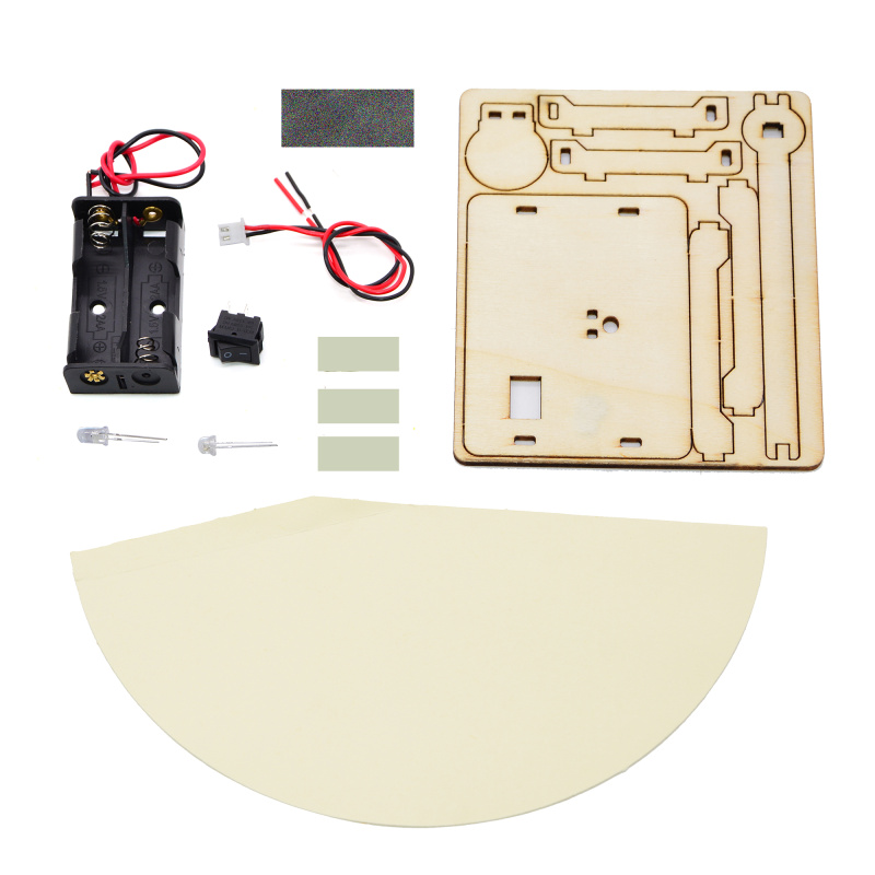 Material: Wood + Paper + Battery Box + Switch + Terminal Wire + LED + Sponge Adhesive