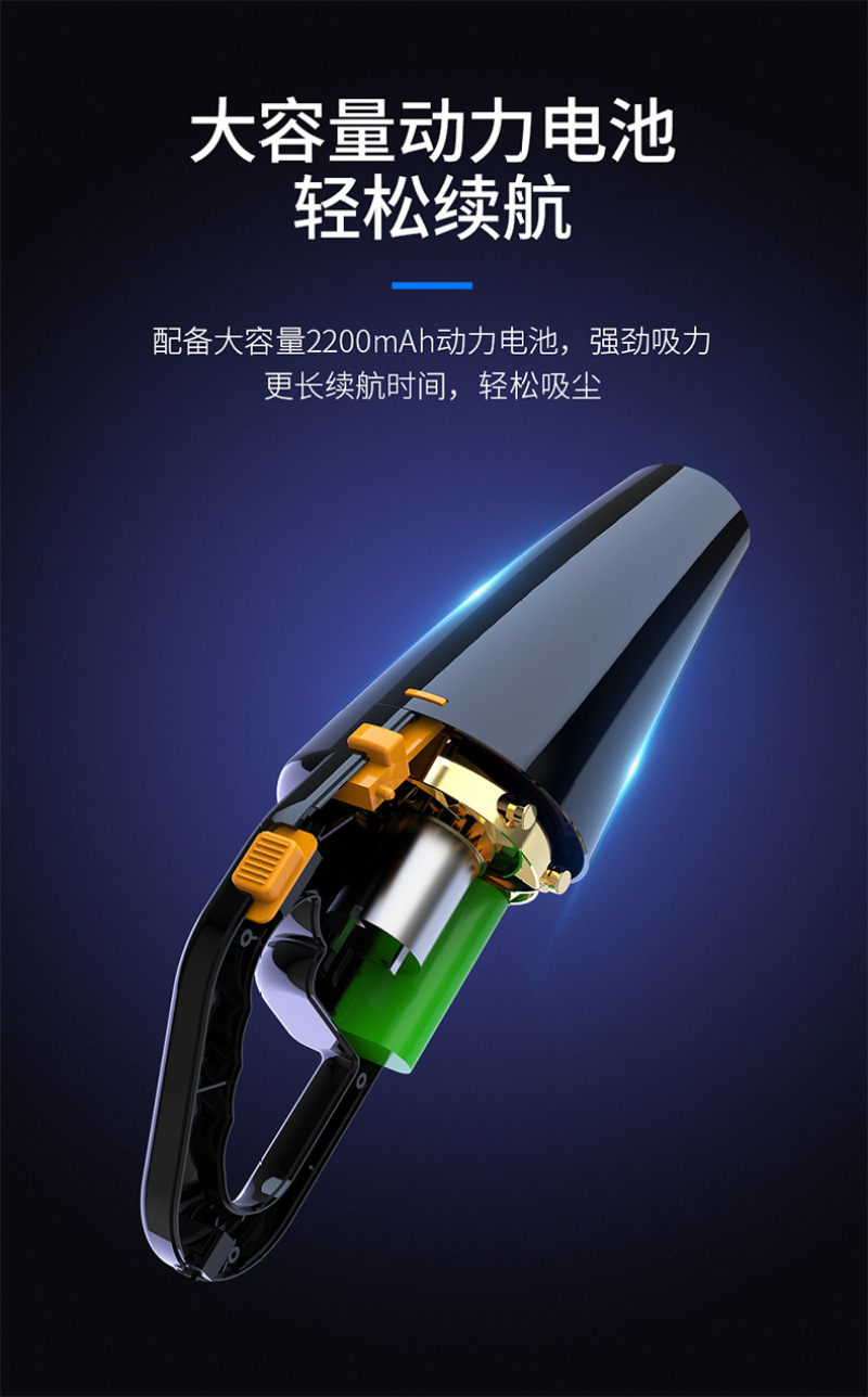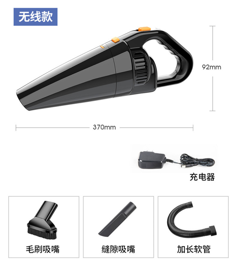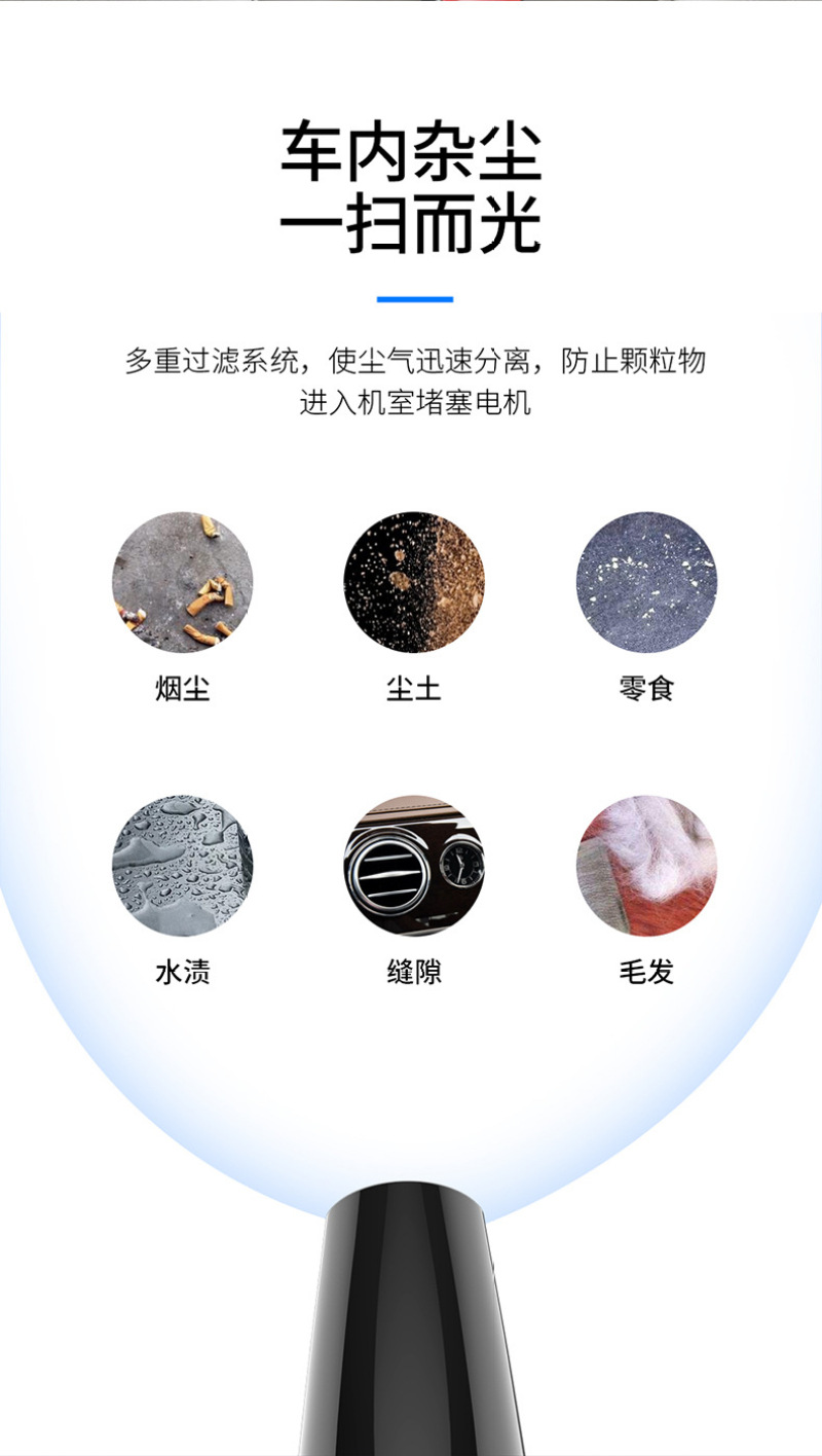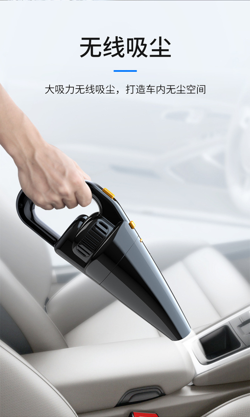 2. The product has strong suction, dual use of dry and wet, detachable dust storage tank, and is equipped with a long straw, used to remove the dust and dirt in the corner and gap of the car.