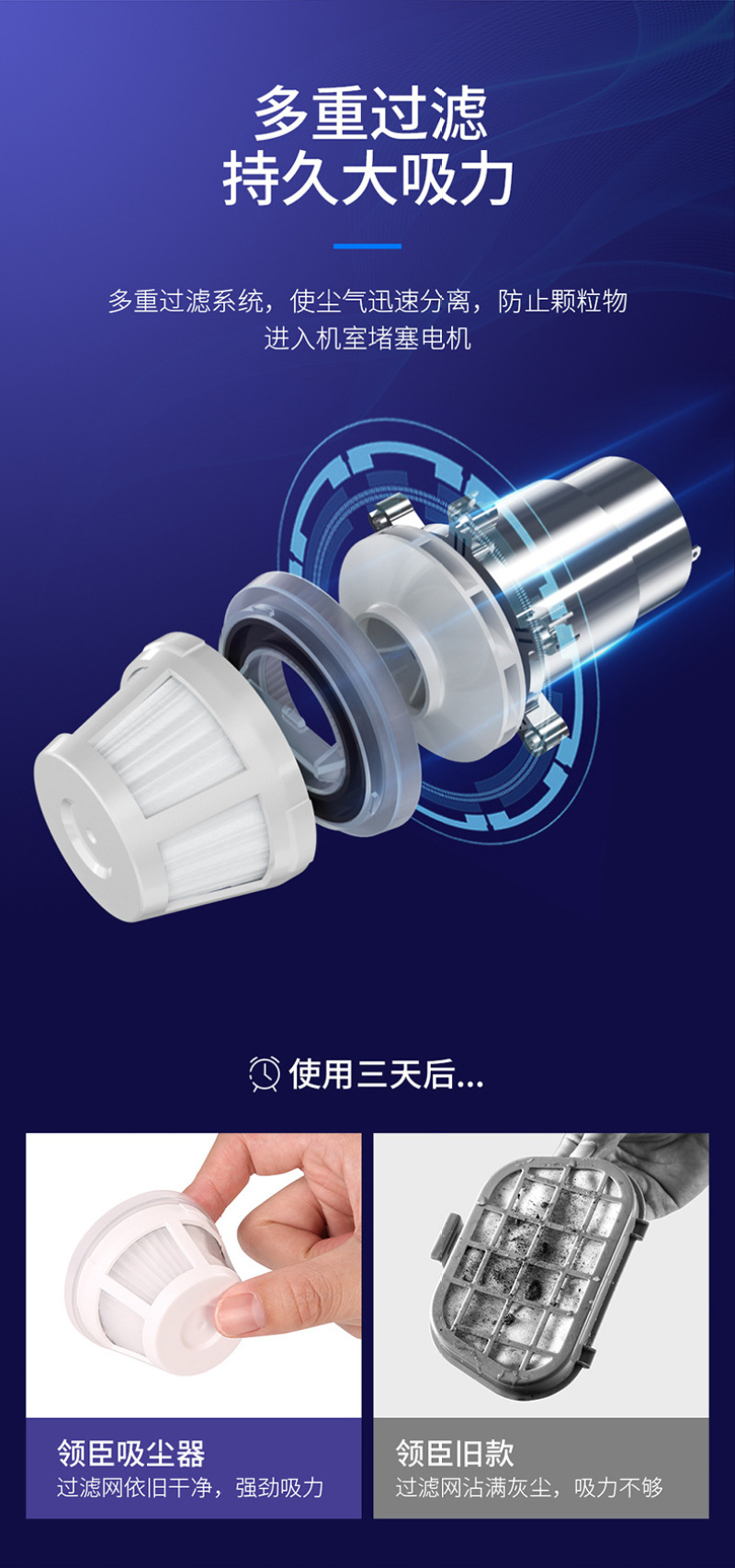 3. This product has the excellent quality and convenience that you expect. It can be removed and cleaned to make the vacuum cleaner play a large and continuous cleaning performance.