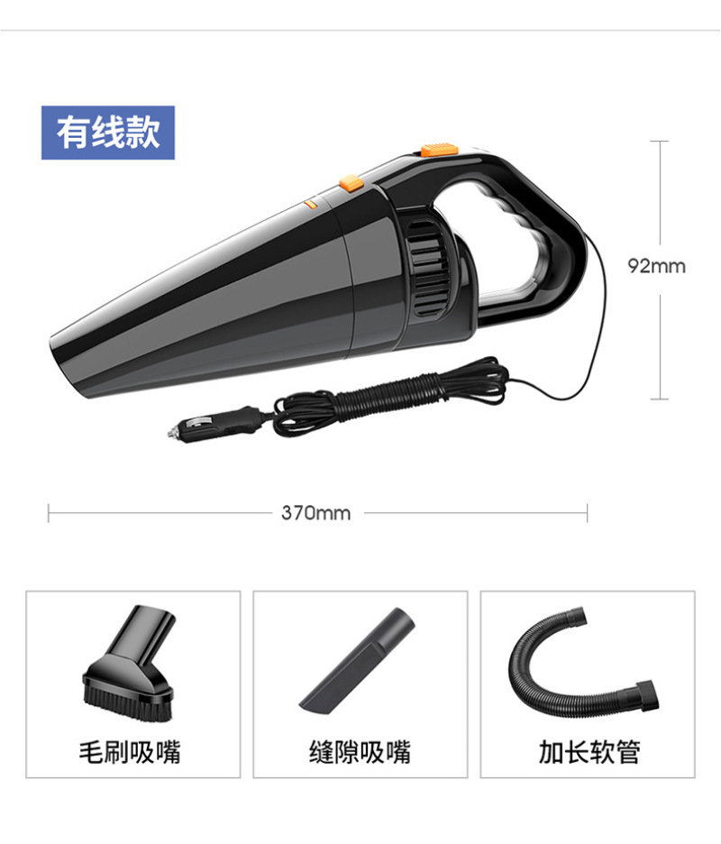 Winter and spring weather dry, dust too much, if let them stay in the car, easy to produce bacteria and damage human health! To prevent dust and water quality, it is a good choice for this model with strong power, very powerful, and equipped with a duck mouth tube, can be sucked to any corner! You can also drink a lot of water oh, there is no need to drink or other liquids spilled on the car! It has very little noise and strong power. Plug in 12V cigarette lighter power supply to use, power conductor about 4.5 meters convenient for you to clean every corner of your car. This vacuum can absorb water, and the water or beverage spilled in the car can be easily removed. Insert the DC 12V power plug into the cigarette lighter. It can not only absorb dust, but also absorb leaking liquid. The front cover is transparent and detachable, equipped with a special filter screen to facilitate regular cleaning and equipped with a transparent water storage bin. The water storage can be equipped with a special corner to absorb flat head, which can absorb dust in the corner and have strong suction force