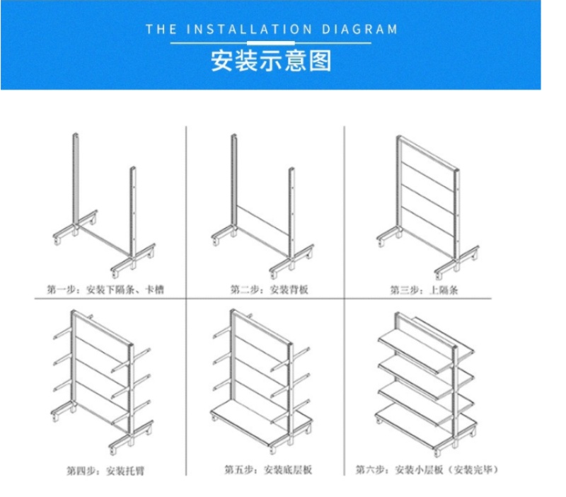 Kongban Supermarket Shelf Specifications:(Length, Width, Height in mm)