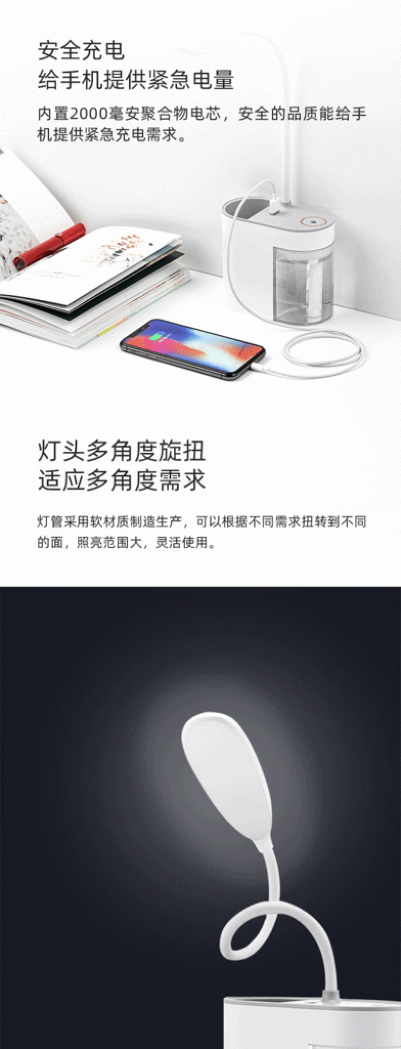 | Use power: | The lamp 1W/spray 2W/power bank 5W | Water tank capacity: | 180ML |
