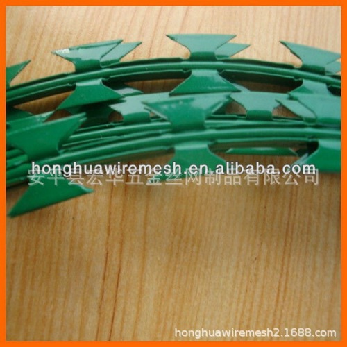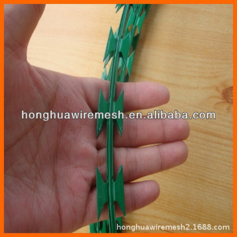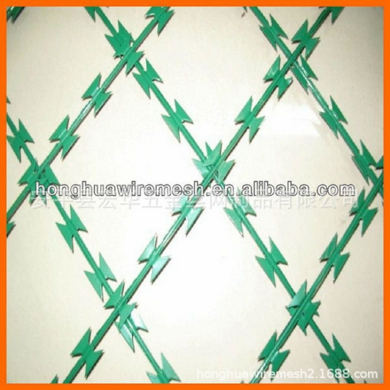 刀片网编制及特点:刀片刺绳是由锐利尖角的钢丝,以及高张力钢丝做线芯组合成的阻绝材料。由于刺线网造型独特不易触摸,因而能达到极好的防护效果。