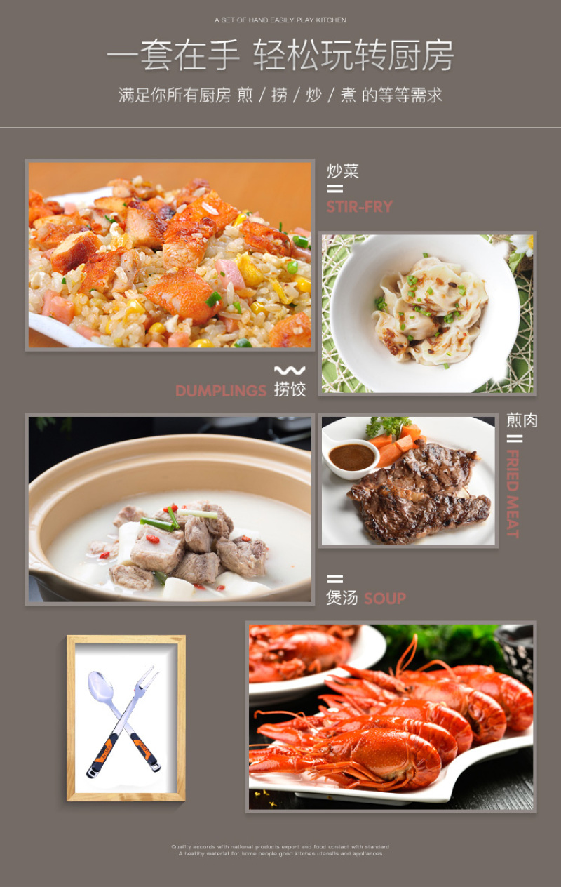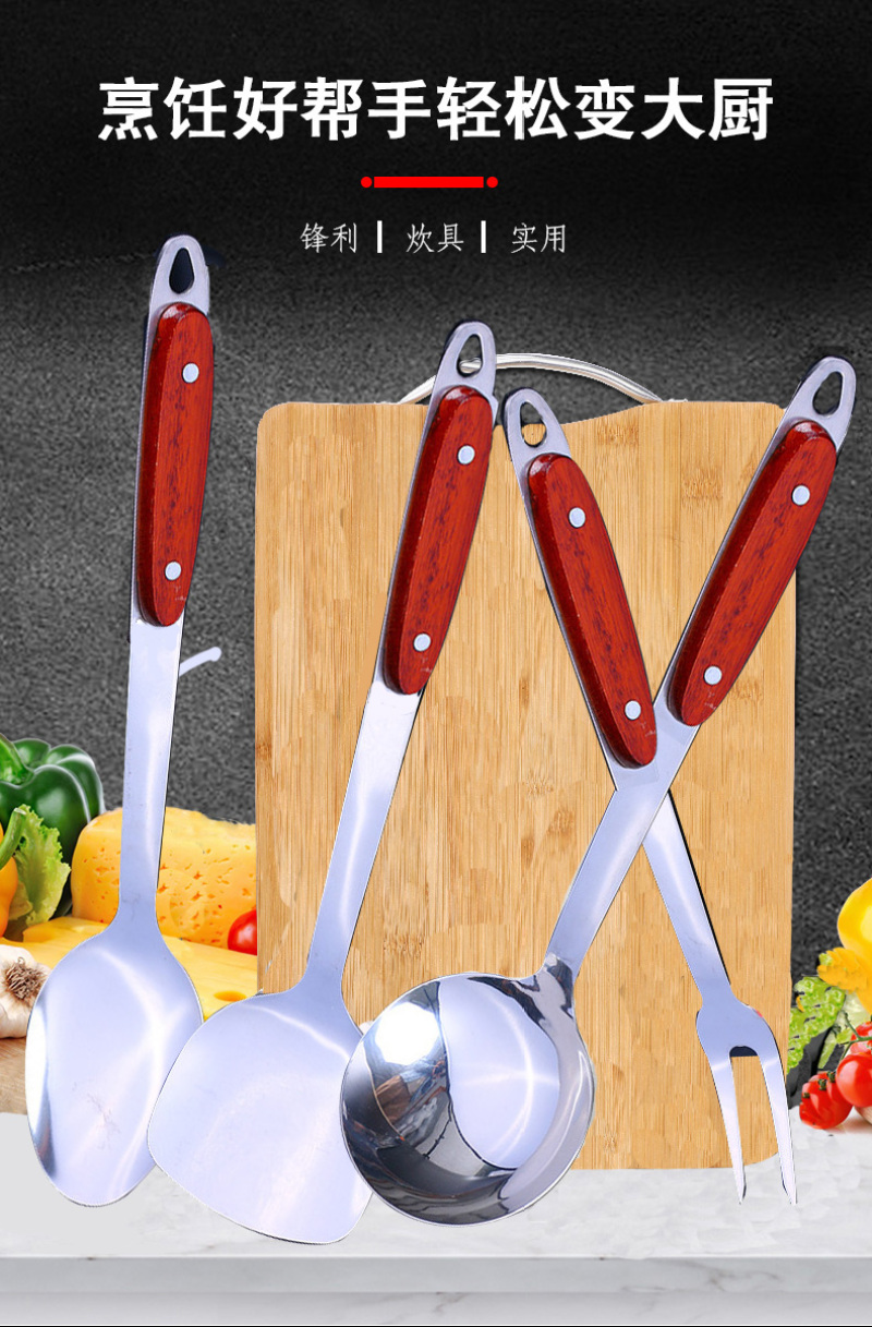 宝贝名称:佳明厨具套装304不锈钢 炊具5件套铲勺全套锅铲炒菜铲子木柄联系方式:手机/微信:15858824208