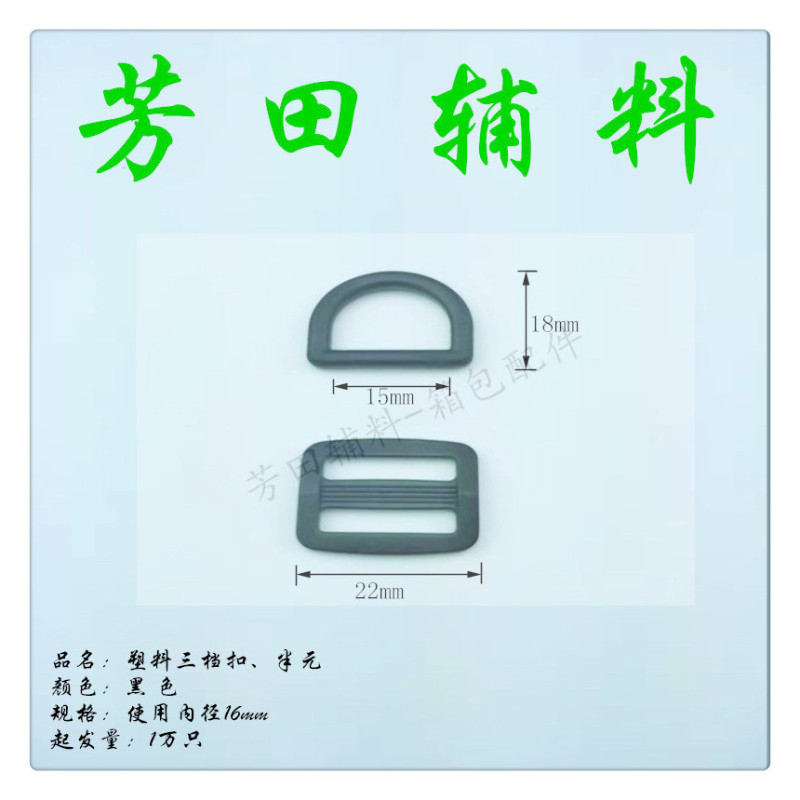 Internal diameter 15mm plastic 'Sun' type buckle with four settings, semi-circle, backpack buckle and adjustable buckle.