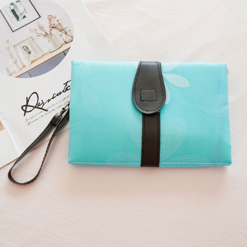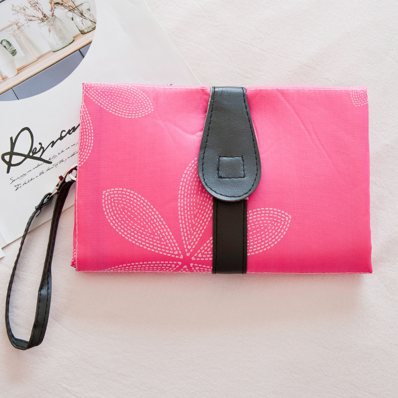 1. Foldable, compact, and portable, the changing pad can be conveniently hung on the stroller, or on mom's wrist and clothing for a stylish look!