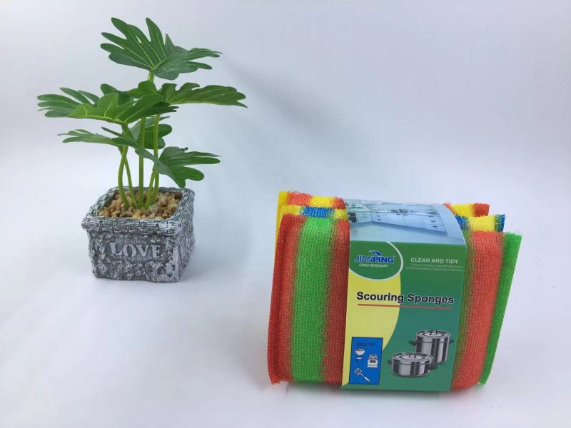 Shunmao dual-color stripe 4pcs set, green card washing sponge, cleaning sponge block, sponge brush, kitchen cleaning supplies