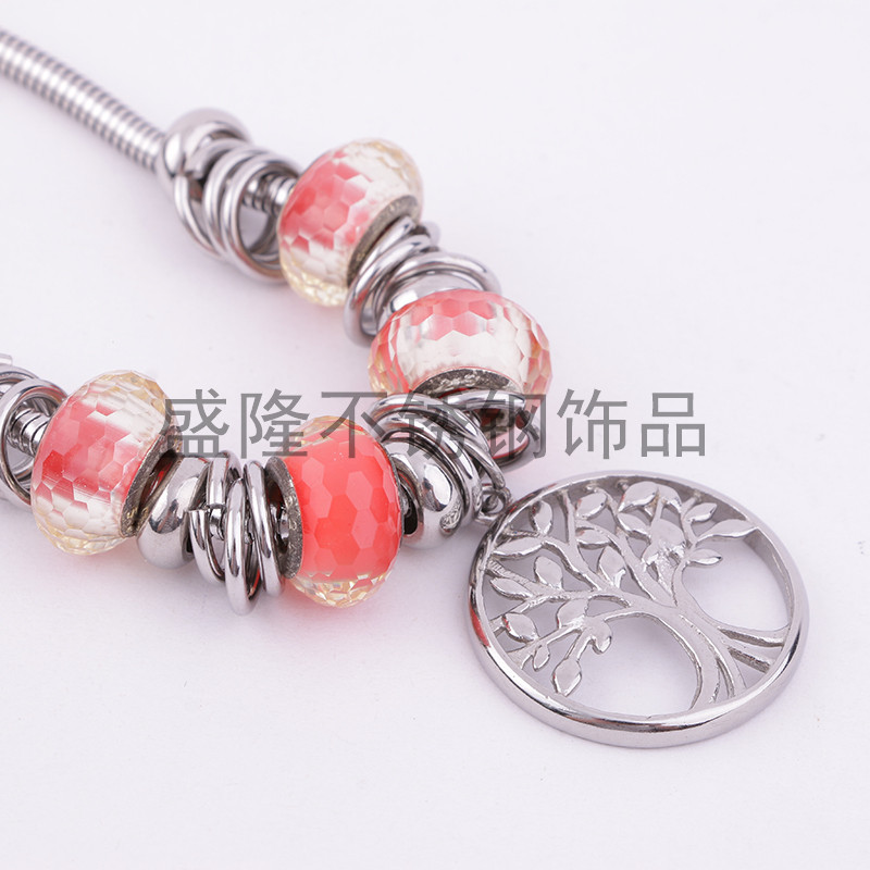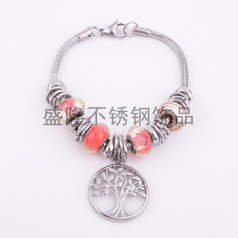 europe and america cross border new bracelet stainless steel circle bracelet alloy hollow lucky tree crystal beads pendant