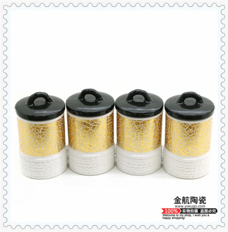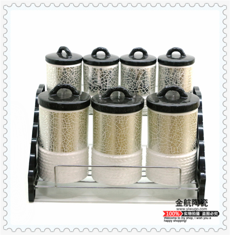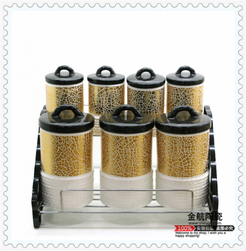 Product Name: Kitchen Seasoning Set of 7 Pieces - Iron Frame Sealed Jars for Tea, Coffee, and More - Gold Navigation Ceramics