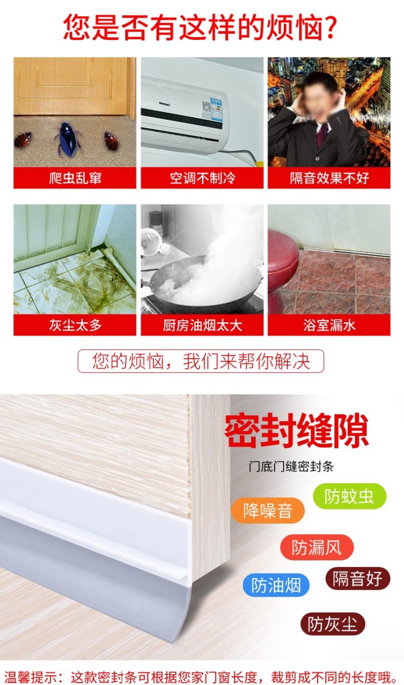 soft and hard co-extrusion door seam sealing strip door bottom gap block strip anti-theft door windproof strip 中文版