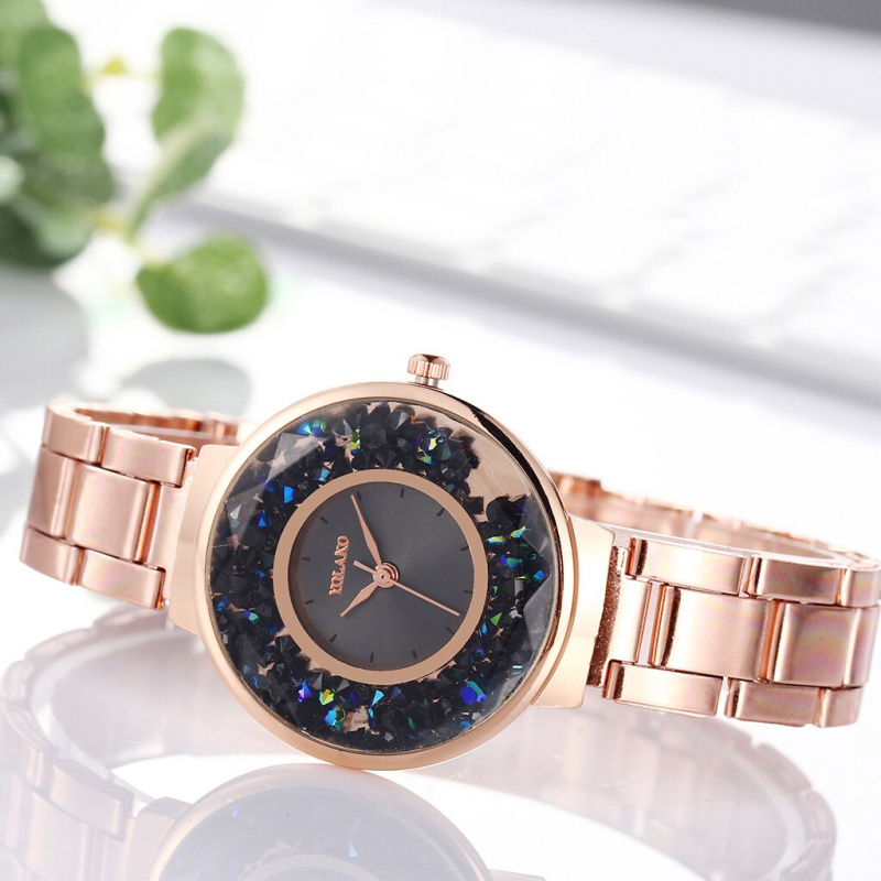 New steel belt luxury ladies color quicksand crystal face high-end watch