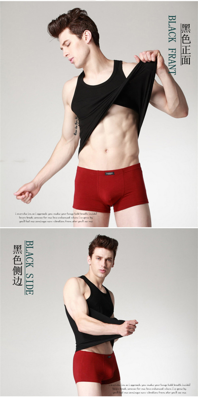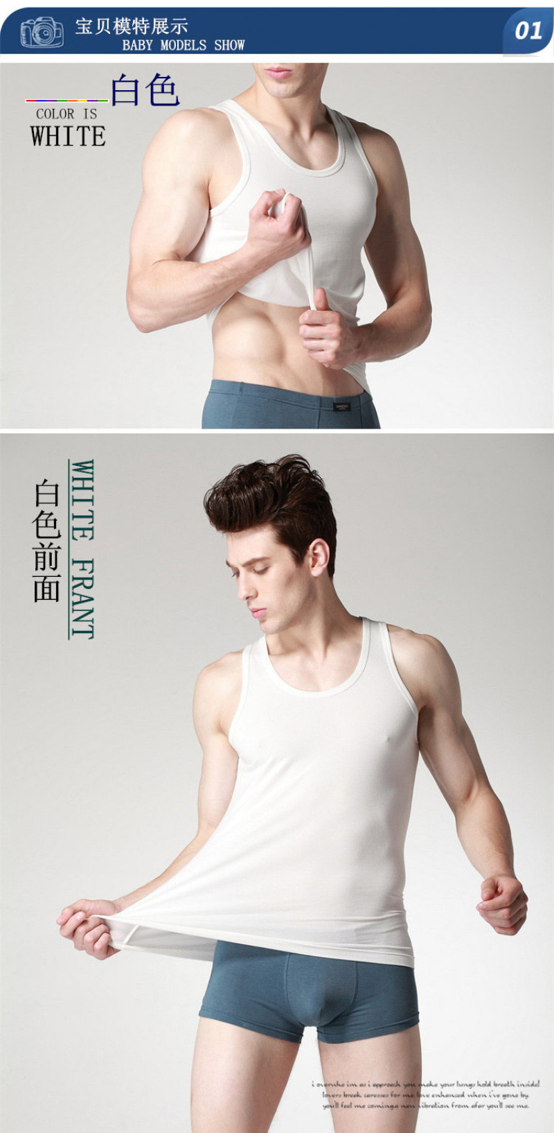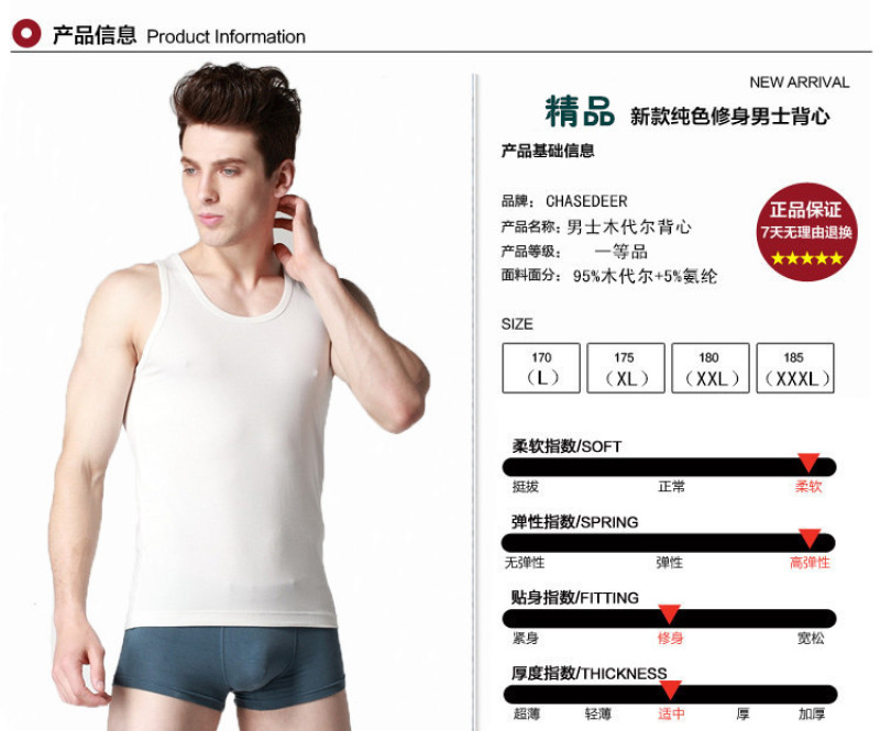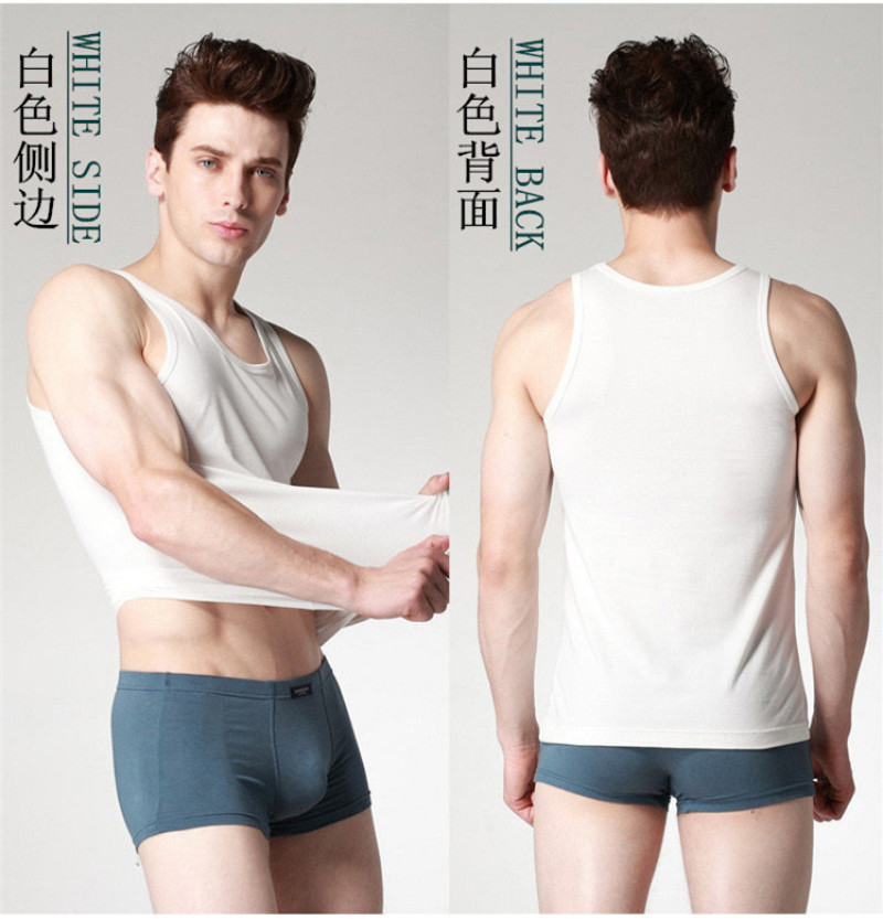 We sell is a quality of life, a concept of life... Return to a comfortable life, return to simple clean? Knitted fabric: using natural wood pulp fiber, excellent quality. Breathable, sweat-absorbent, comfortable.? Color: black, white, linen gray Composition: 47.5 wood pulp lyocell + 47.5 cotton + 5% spandex Execution standard: GB/T8878-2002 (first-class product) Safety category: B class (products directly in contact with the skin) Formaldehyde standard: GB18401-2003????? Features: This vest is made of natural wood pulp fiber mixed with pure cotton, the fabric is elastic, the style is close-fitting, casual, comfortable, for the ideal home underwear of modern trendy people. The fabric feels soft and comfortable. The style is simple and elegant.