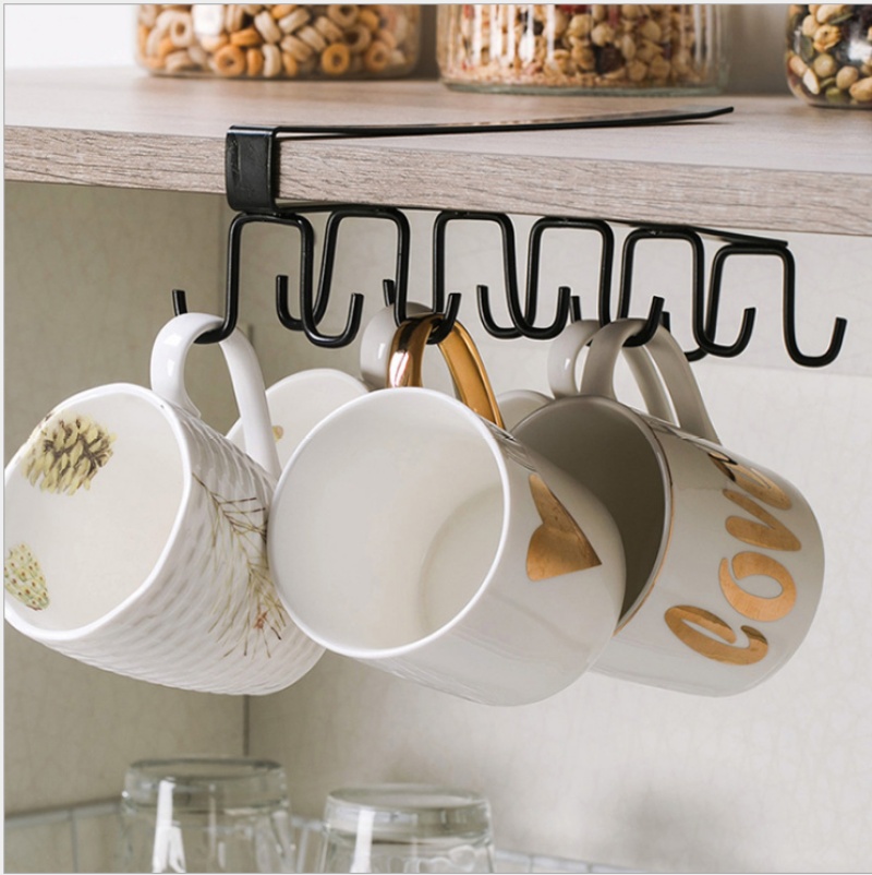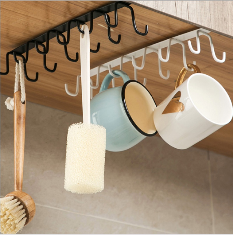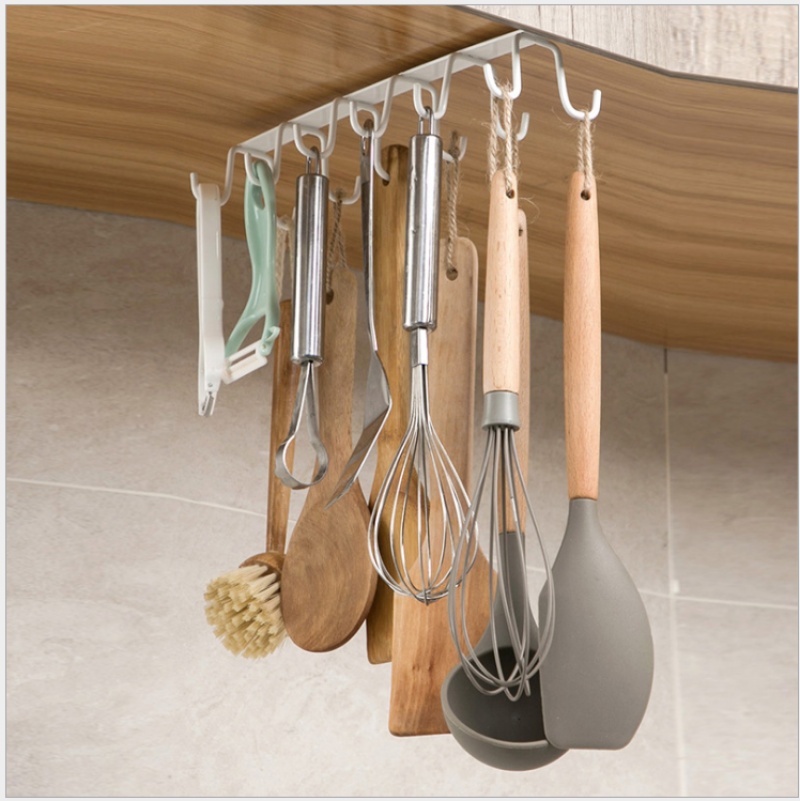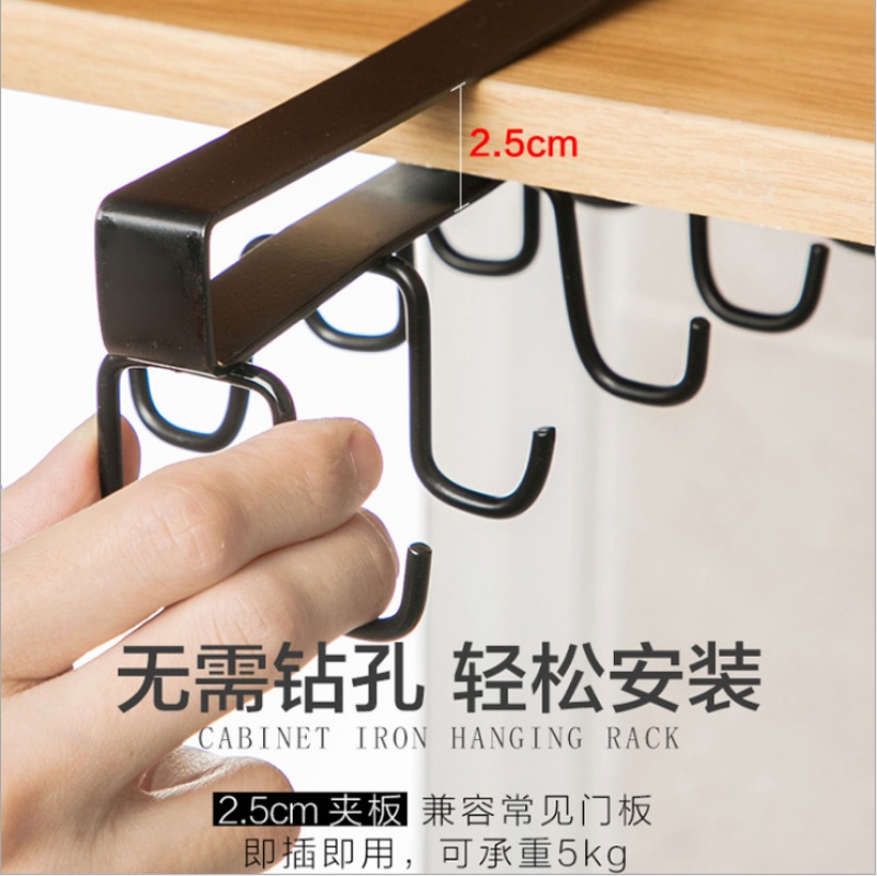 iron cabinet hook punch-free kitchenware row hook kitchen wall-mounted shelves clothes rack load-bearing double row rack 中文版