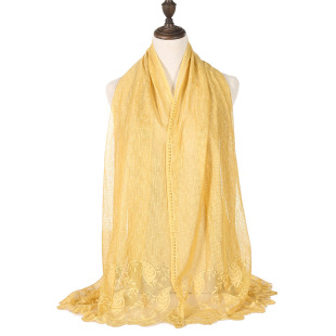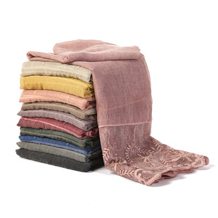 Simulation silk pure color hollow out flower women's scarf single color shawl