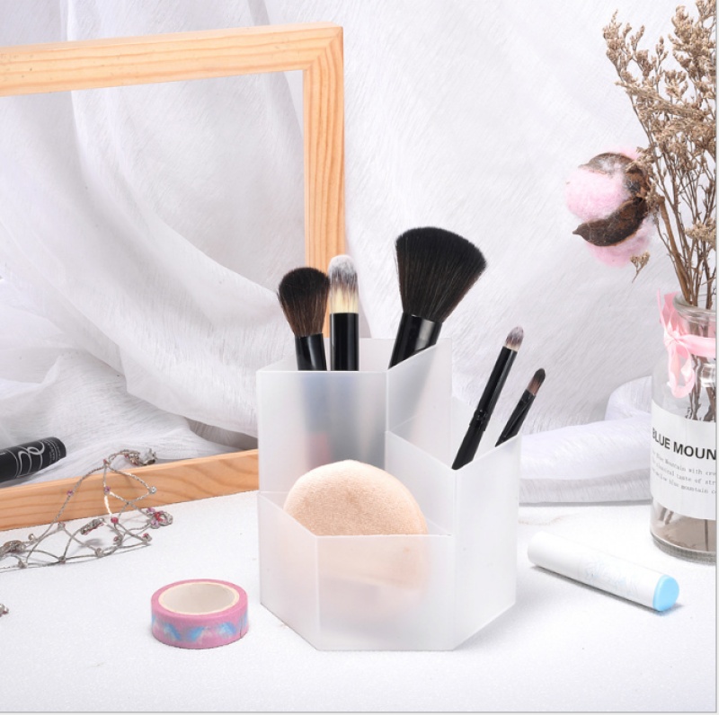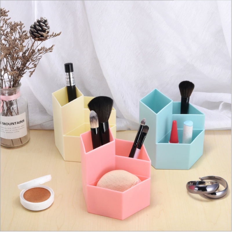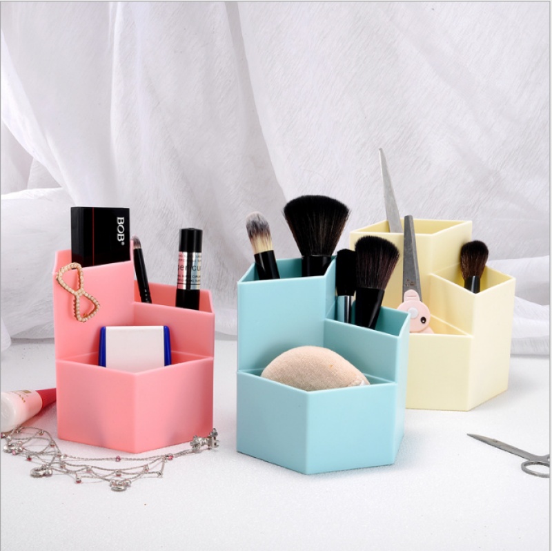 3 grid ins prismatic storage box stationery desktop storage stationery shelf transparent makeup brush storage tube