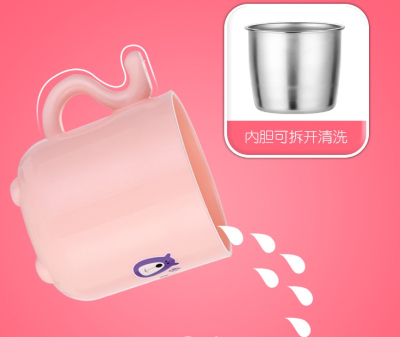 304 stainless steel children's mouth cup baby cartoon kindergarten split type water cup anti hot anti fall split brushin