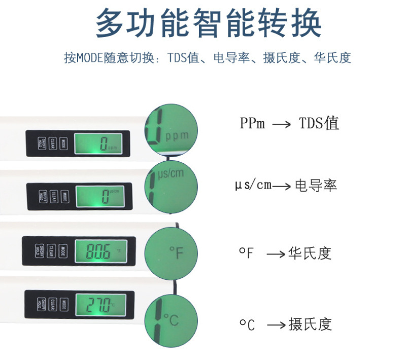 Application scope: Pure water production and drinking, electroplating liquid, boiler water, aquarium water, swimming pool water purity, photographic developing liquid, well water, deep well water, laboratory, aquaculture, food processing, family, office, physical and chemical teaching, ionized water, cosmetics, municipal water supply, travel health care.