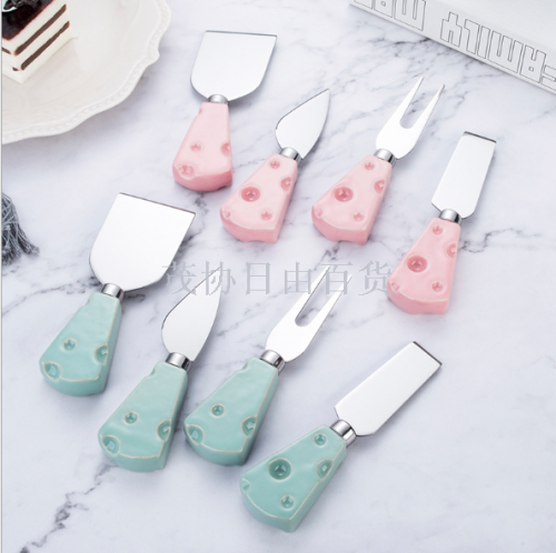 porcelain handle suit stainless steel cheese knife cheese knife set kitchen knives butter knife pizza cutter baking tool 中文版