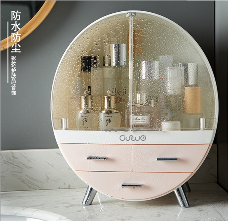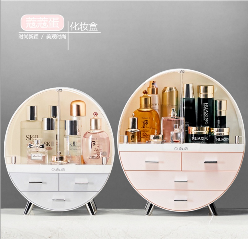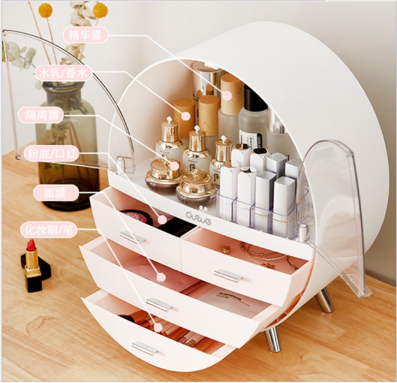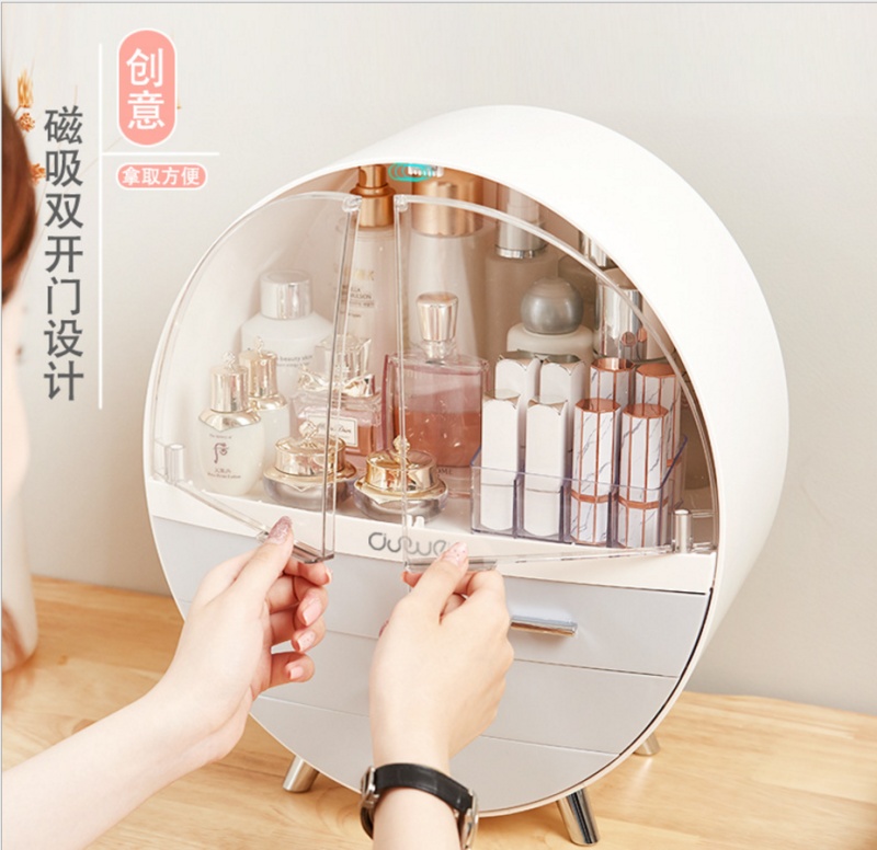 round large capacity dustproof and transparent double door cosmetic sundries with drawer dustproof desktop storage box 中文版