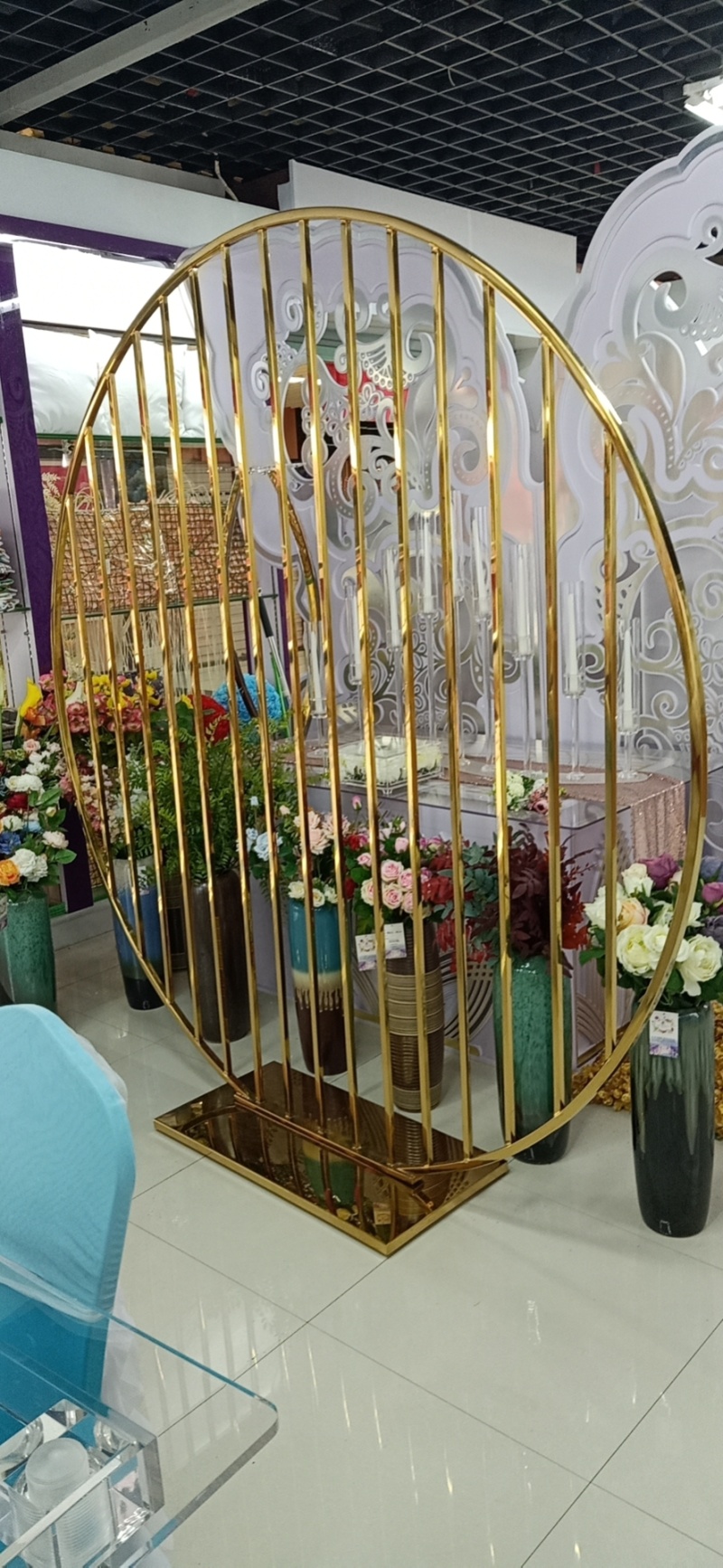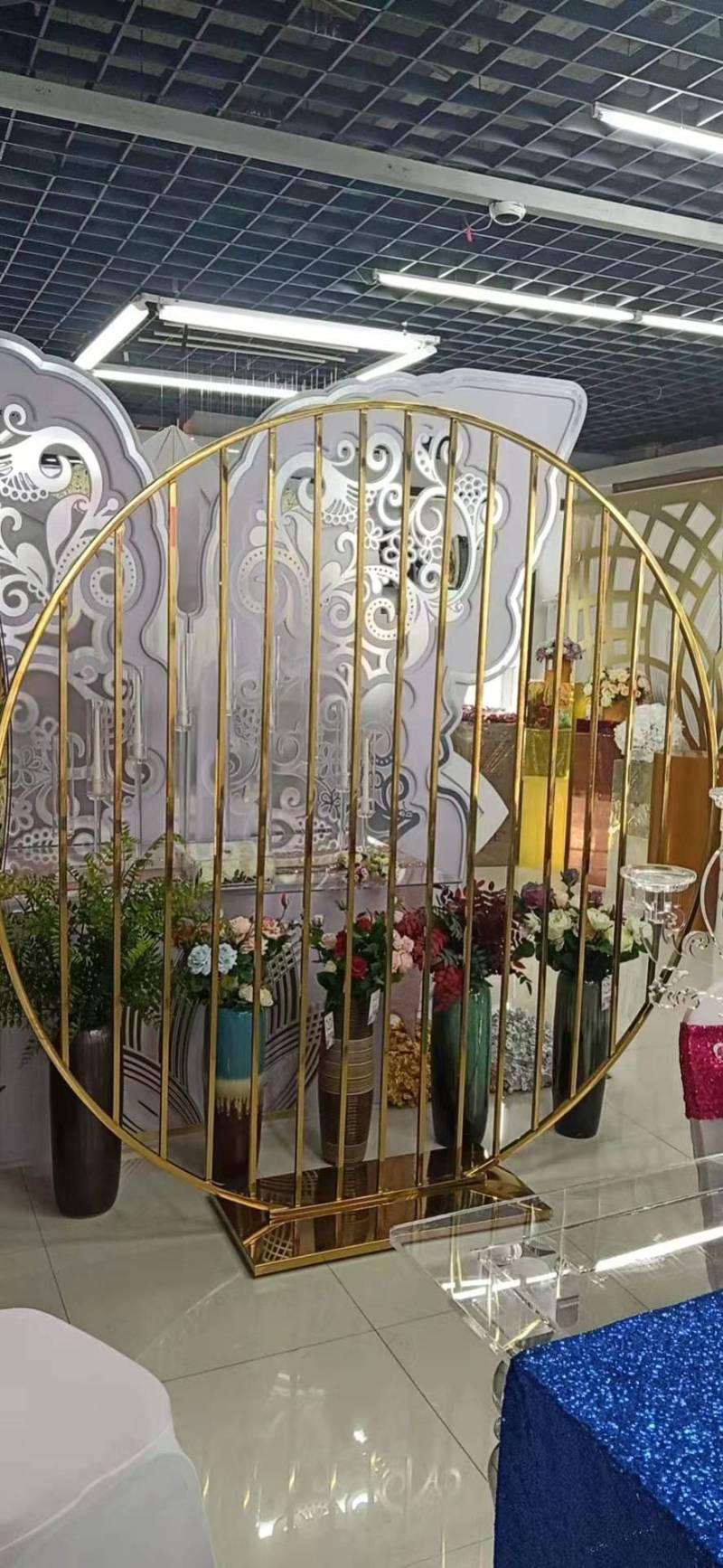New Golden Stainless Steel Background High-End Hotel Wedding Supplies Dining Table Wedding Celebration Decoration