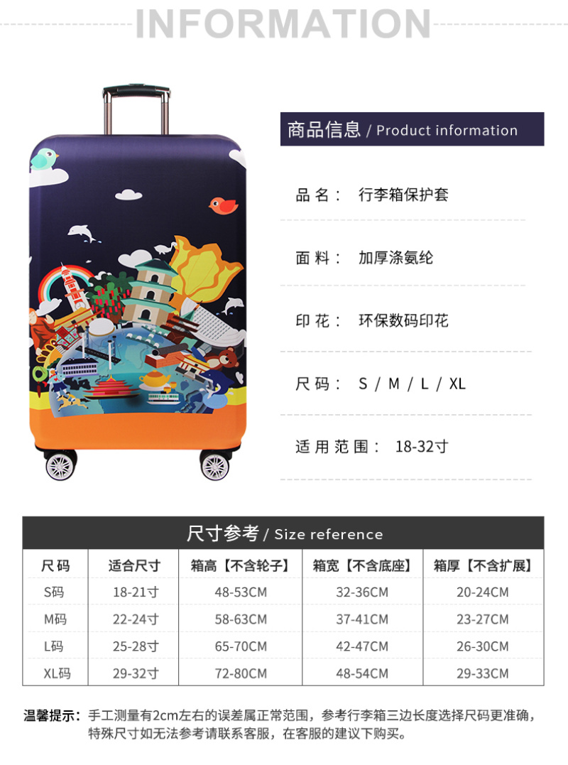 本工厂专业经营拉杆箱,行李箱保护套 ABS拉杆箱,密码箱,化妆箱,旅行箱等各式大小旅行包,箱套。品种繁多,款式潮流新颖,我们将在保证质量的前提下,能让客户以最低廉的价格,最快捷的速度,真诚与客户合作洽谈。欢迎来电咨询,前来选购。可以定制图案样品,来样定做